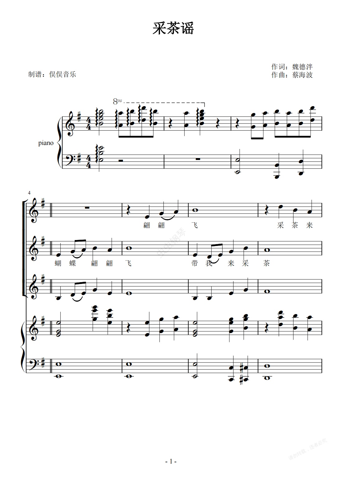 钢琴谱:采茶谣(三声部合唱伴奏谱)