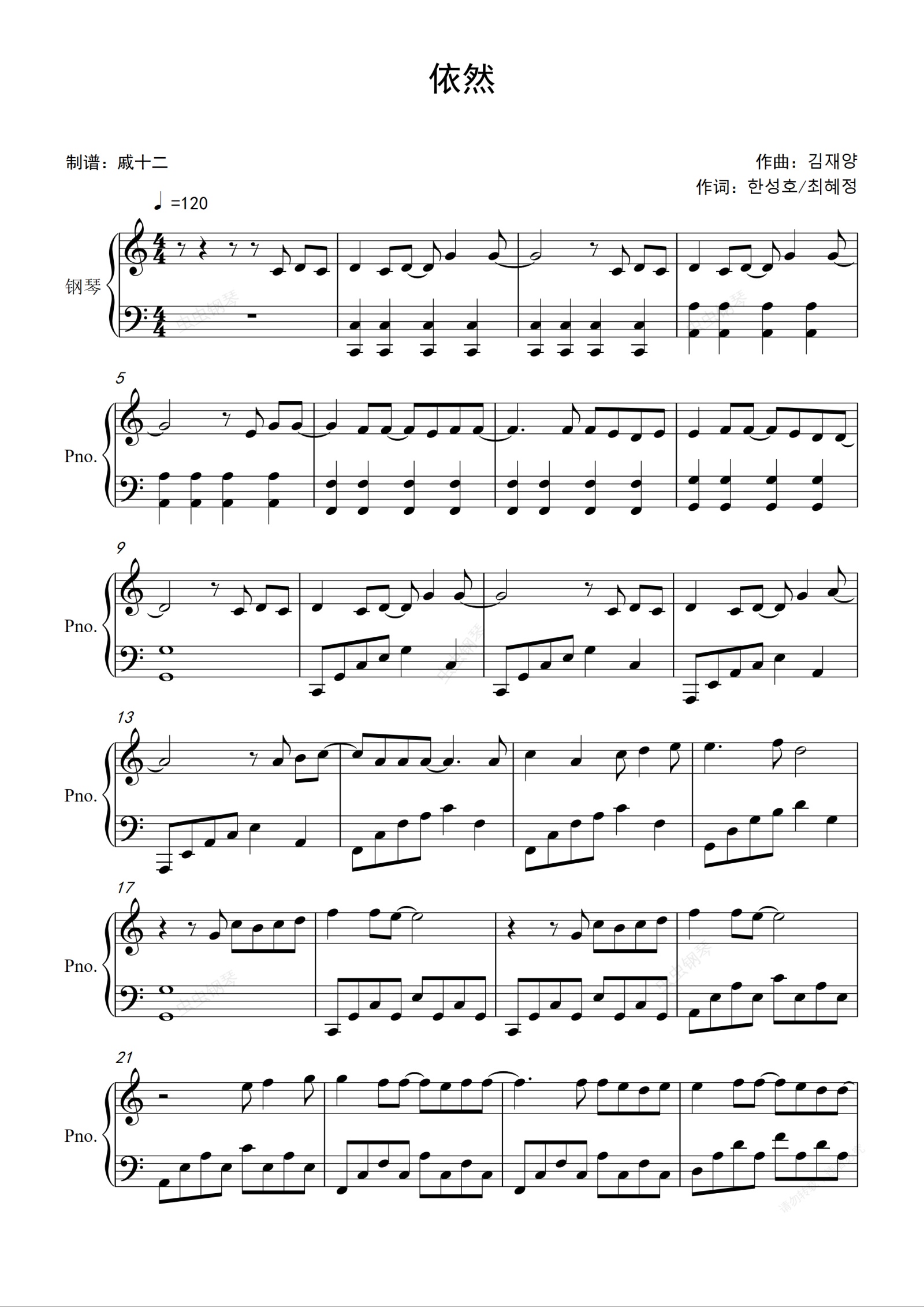 钢琴谱:依然 /여전히《原来是美男啊》插曲OST-C调简单版