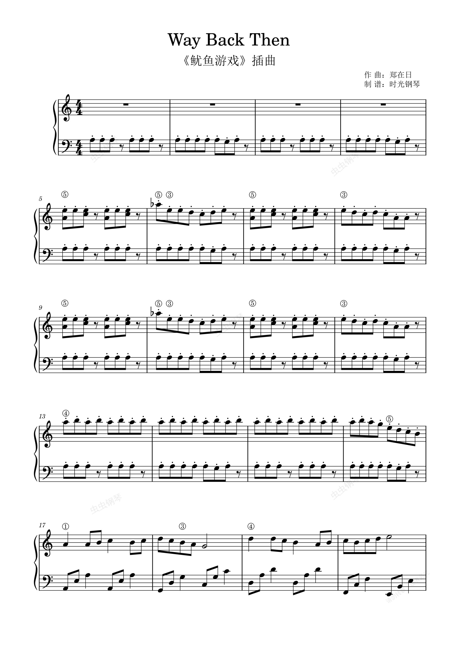 钢琴谱:Way Back Then(鱿鱼游戏插曲)