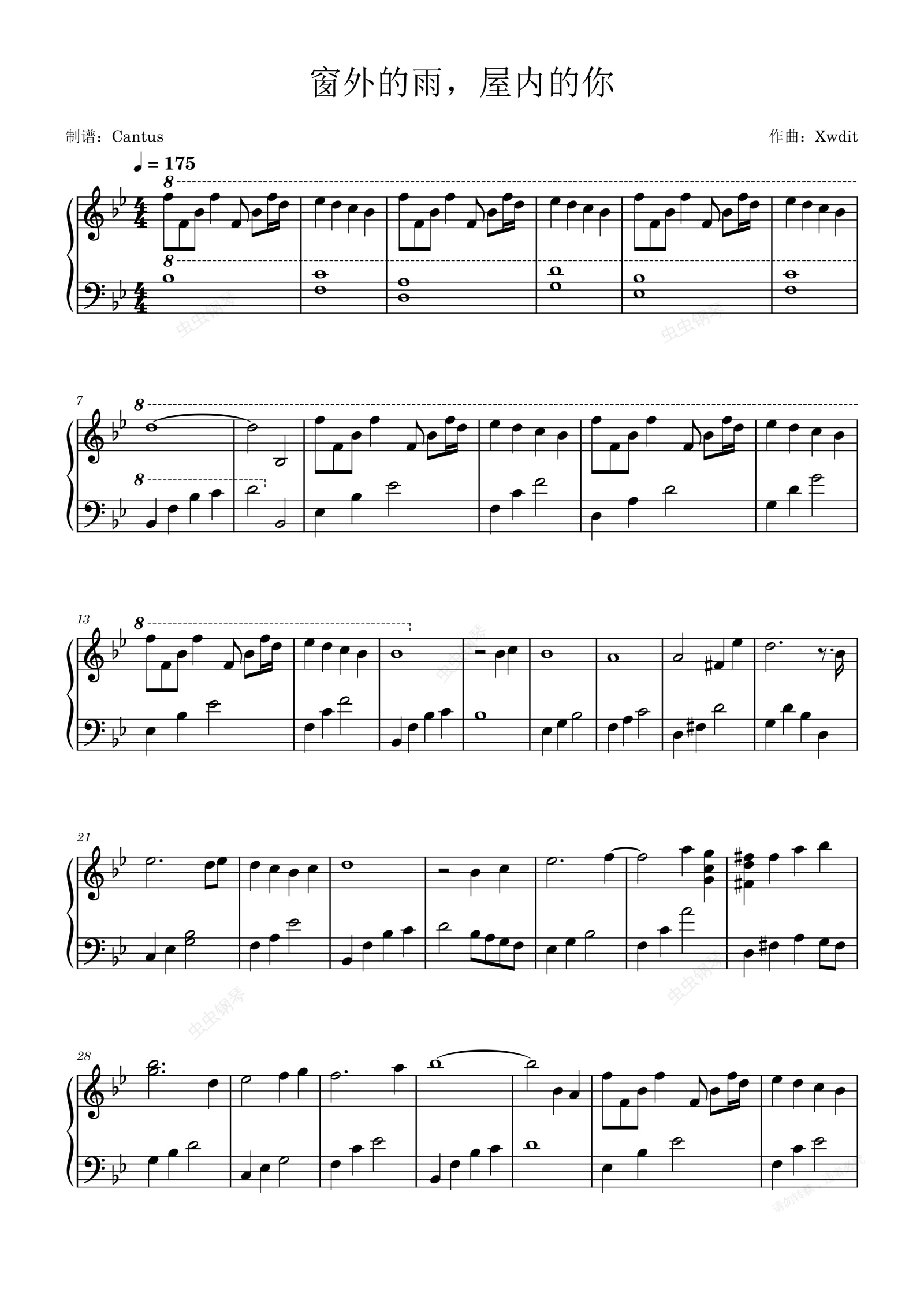 钢琴谱:窗外的雨,屋内的你-Xwdi