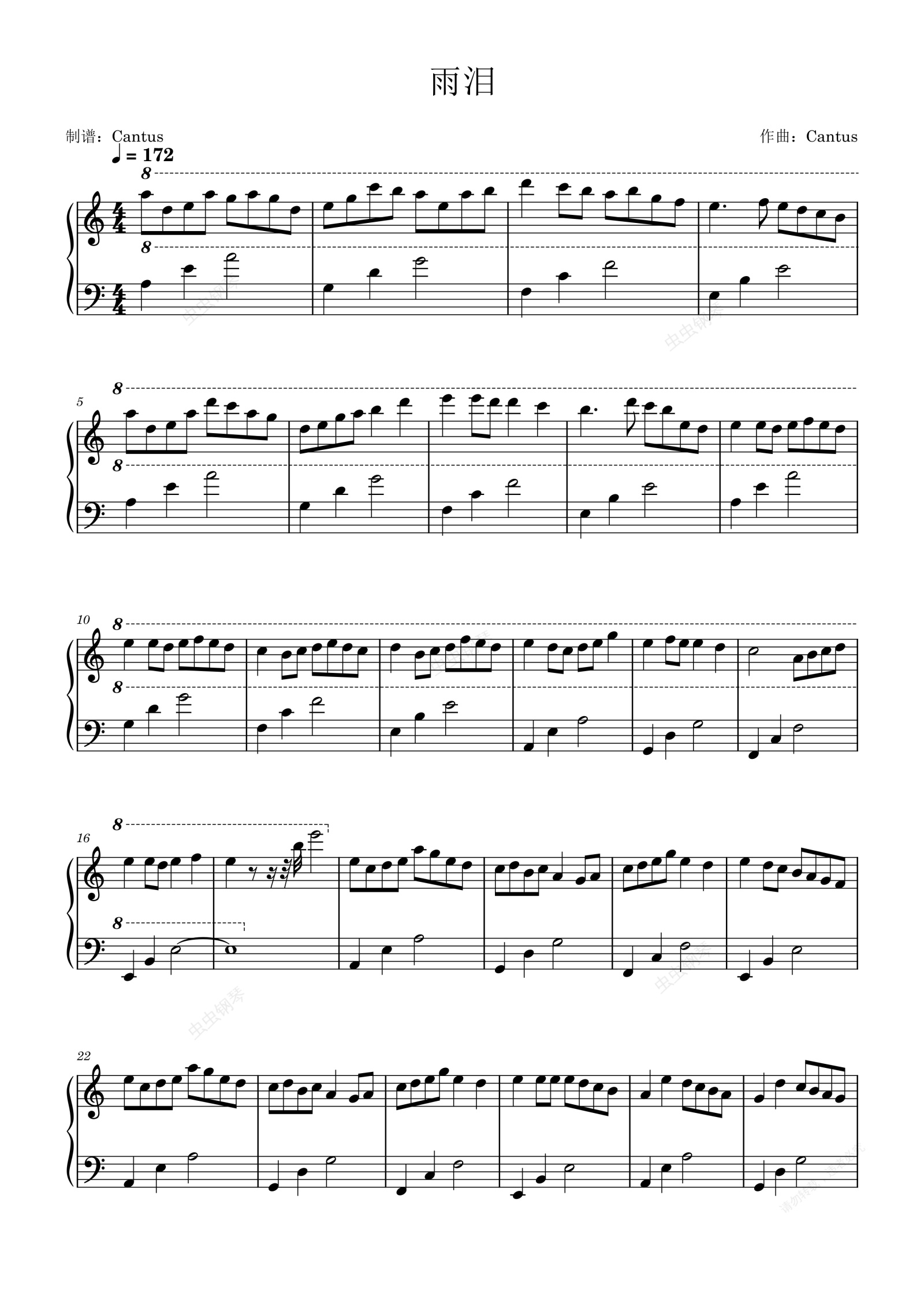 钢琴谱:雨泪-Cantus