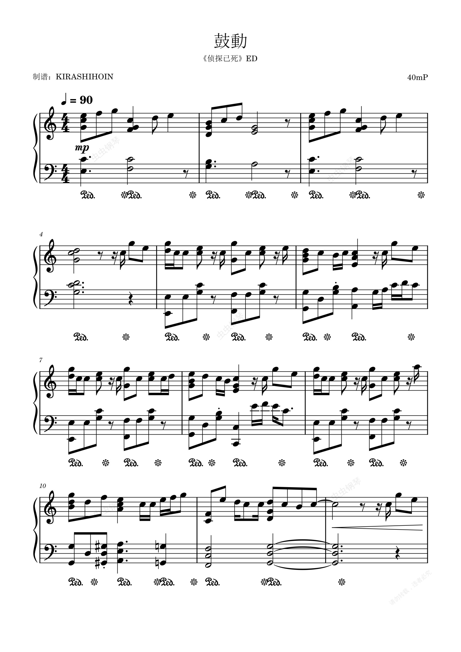 钢琴谱:鼓動(《侦探已死》ED/片尾曲)- 神楽七奈
