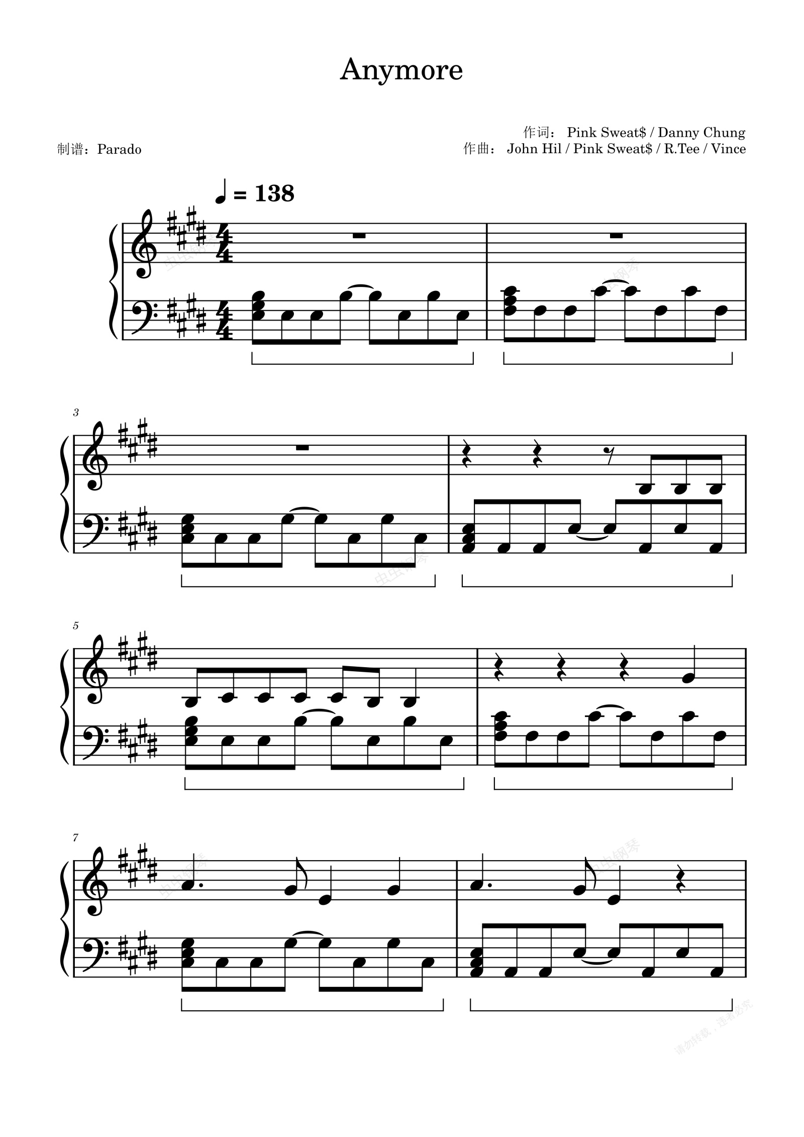 钢琴谱:Anymore - 全昭弥 - 好听又好弹