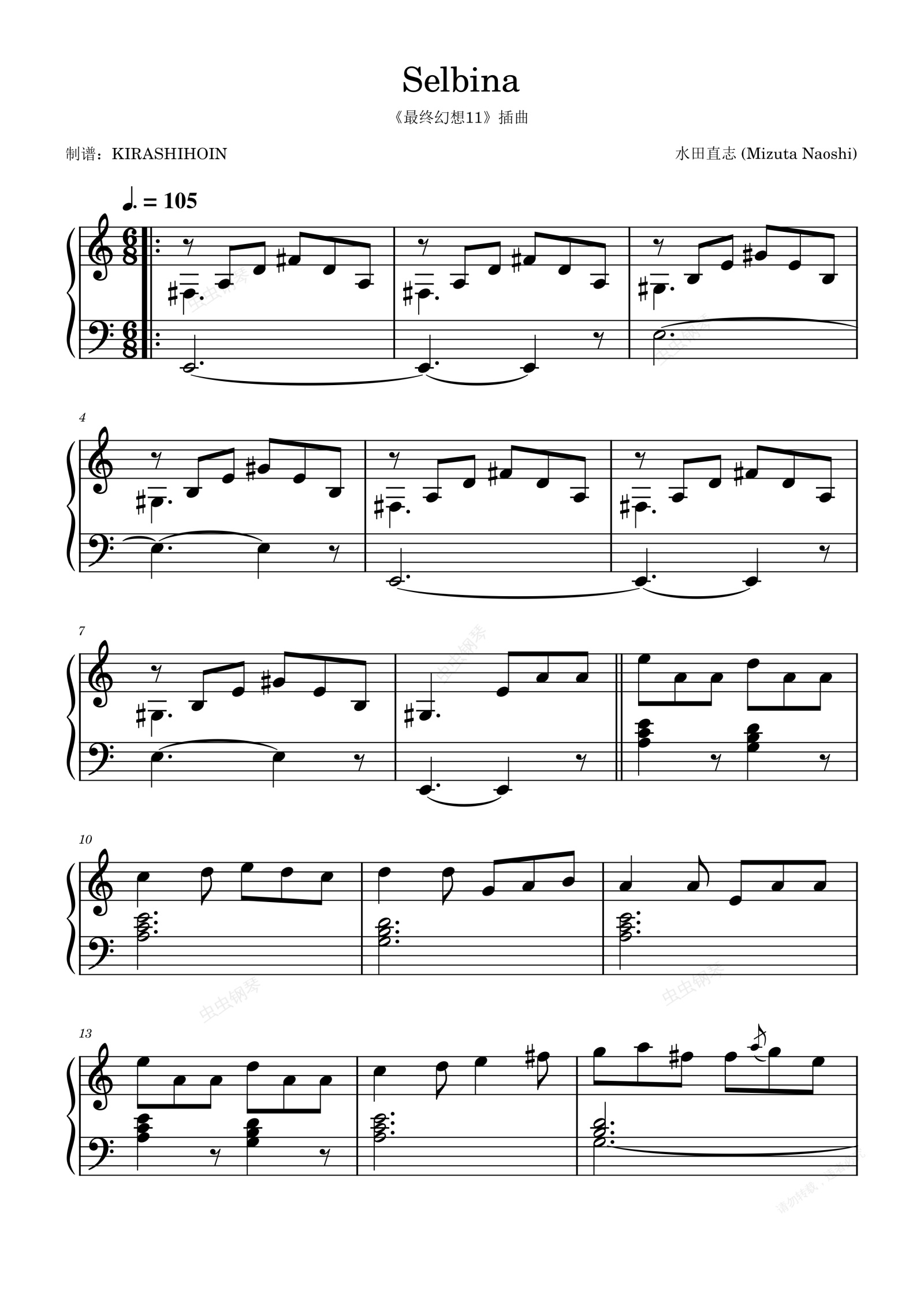 钢琴谱:Selbina(《最终幻想11》插曲)- 水田直志