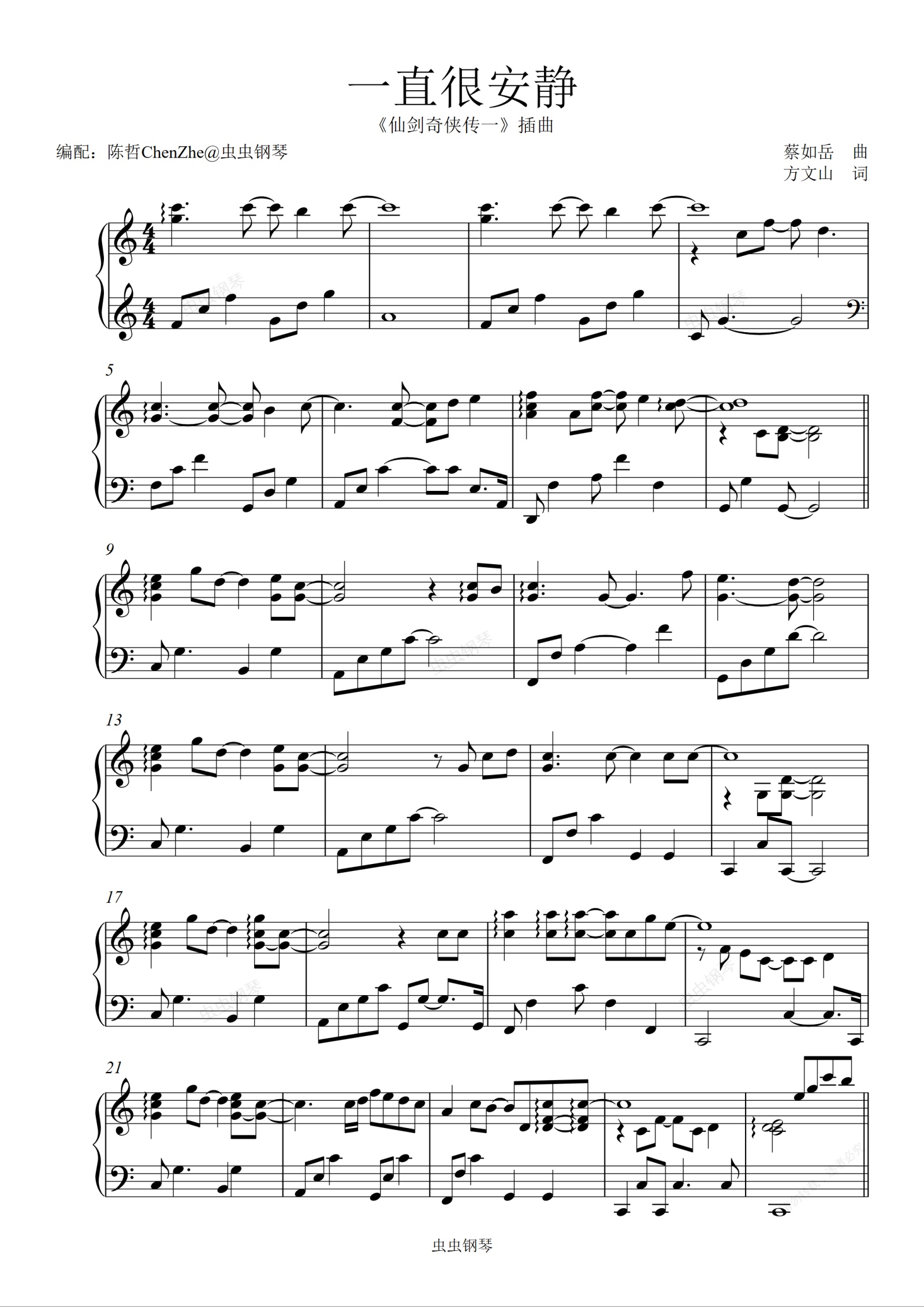 钢琴谱:《一直很安静》阿桑--独奏