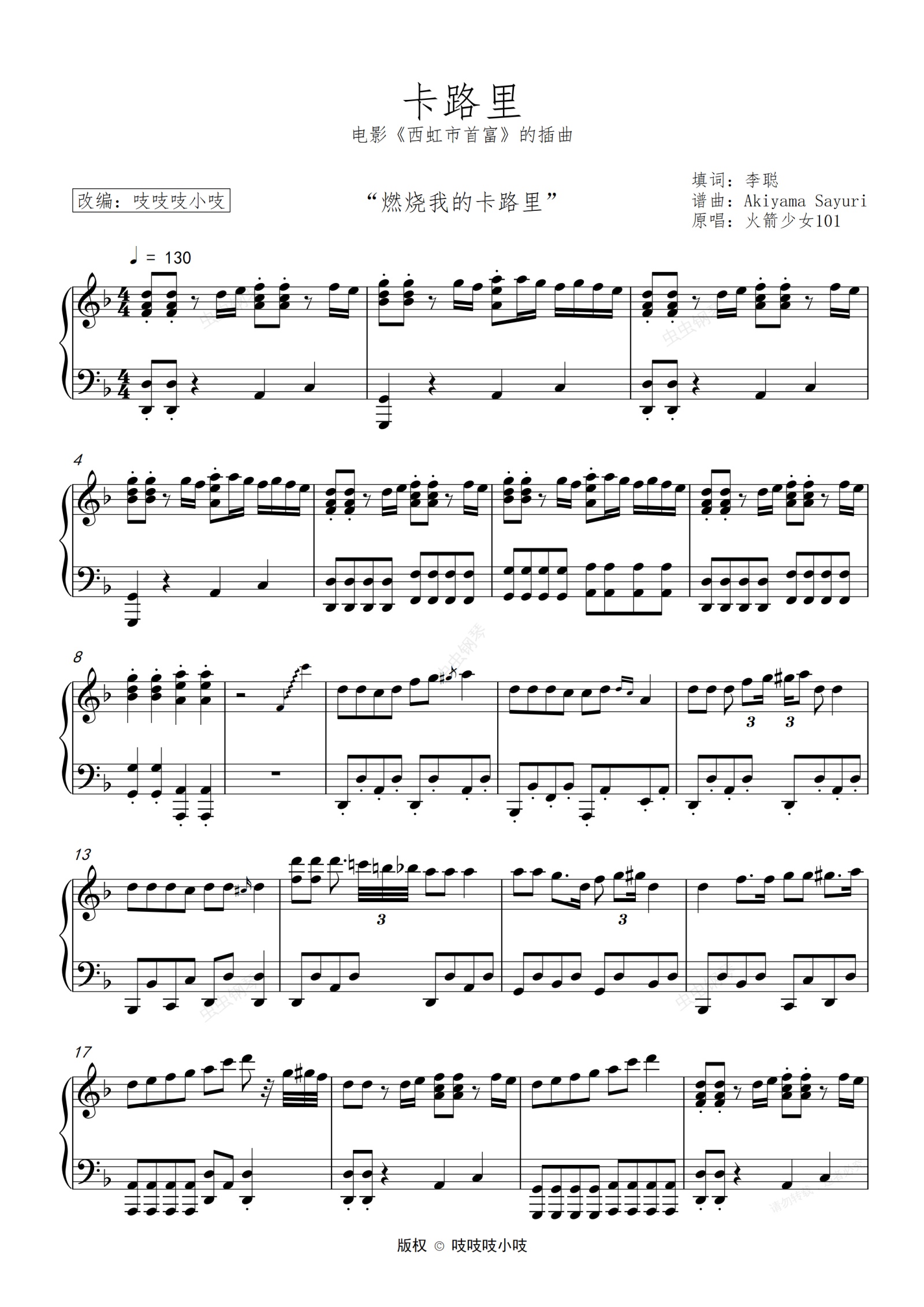 钢琴谱:《卡路里 》欢乐版 吱吱改编(西虹市首富插曲)