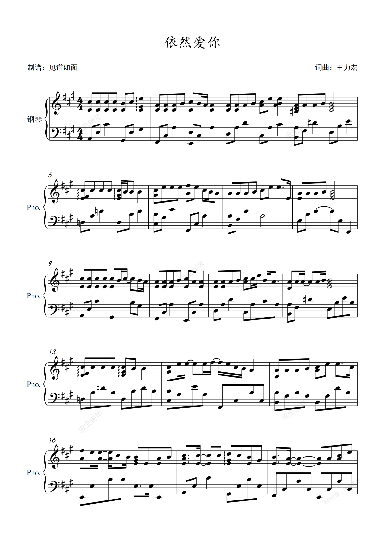 钢琴谱:依然爱你 - 王力宏【原调进阶】