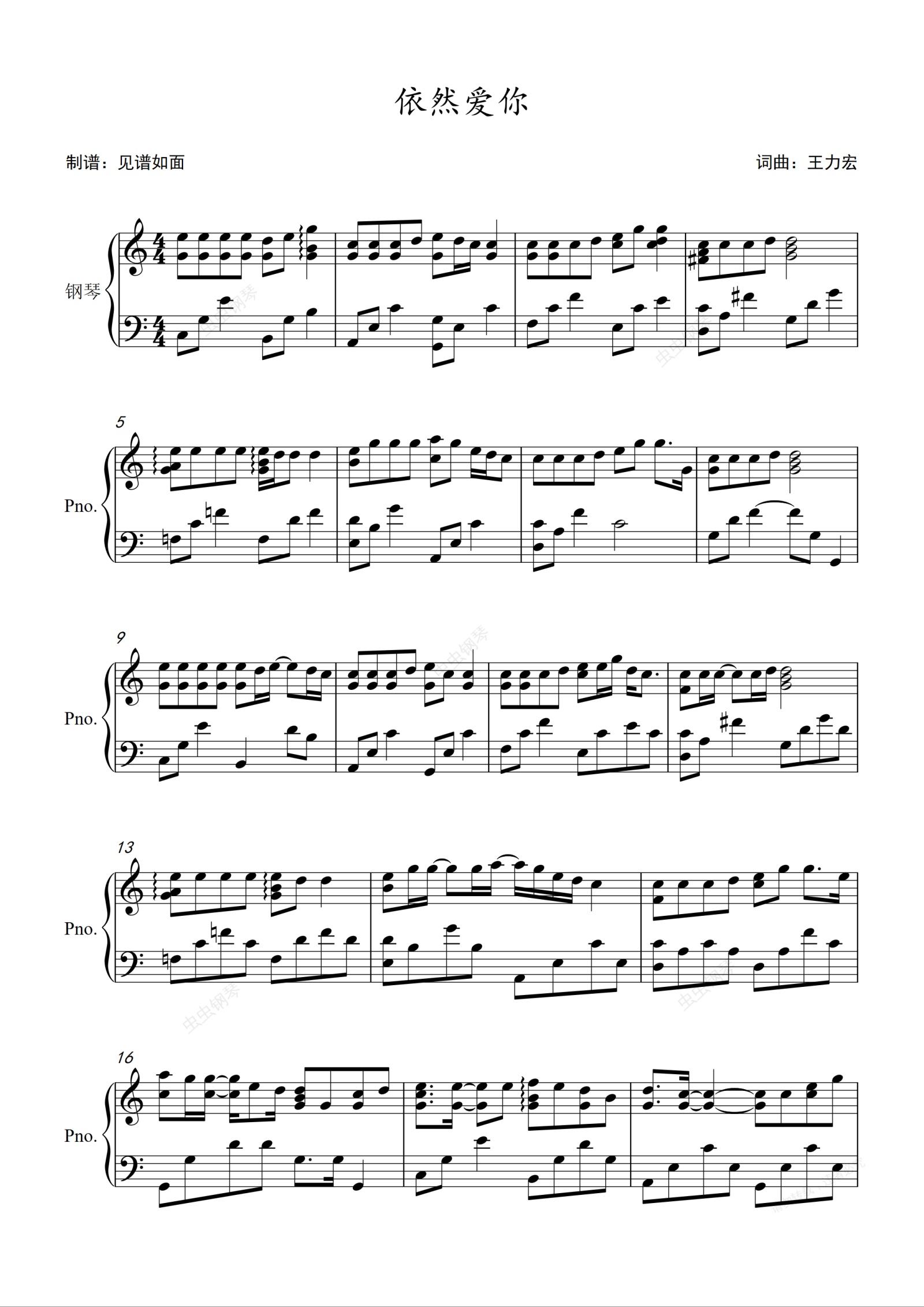 钢琴谱:依然爱你 - 王力宏【c调进阶】