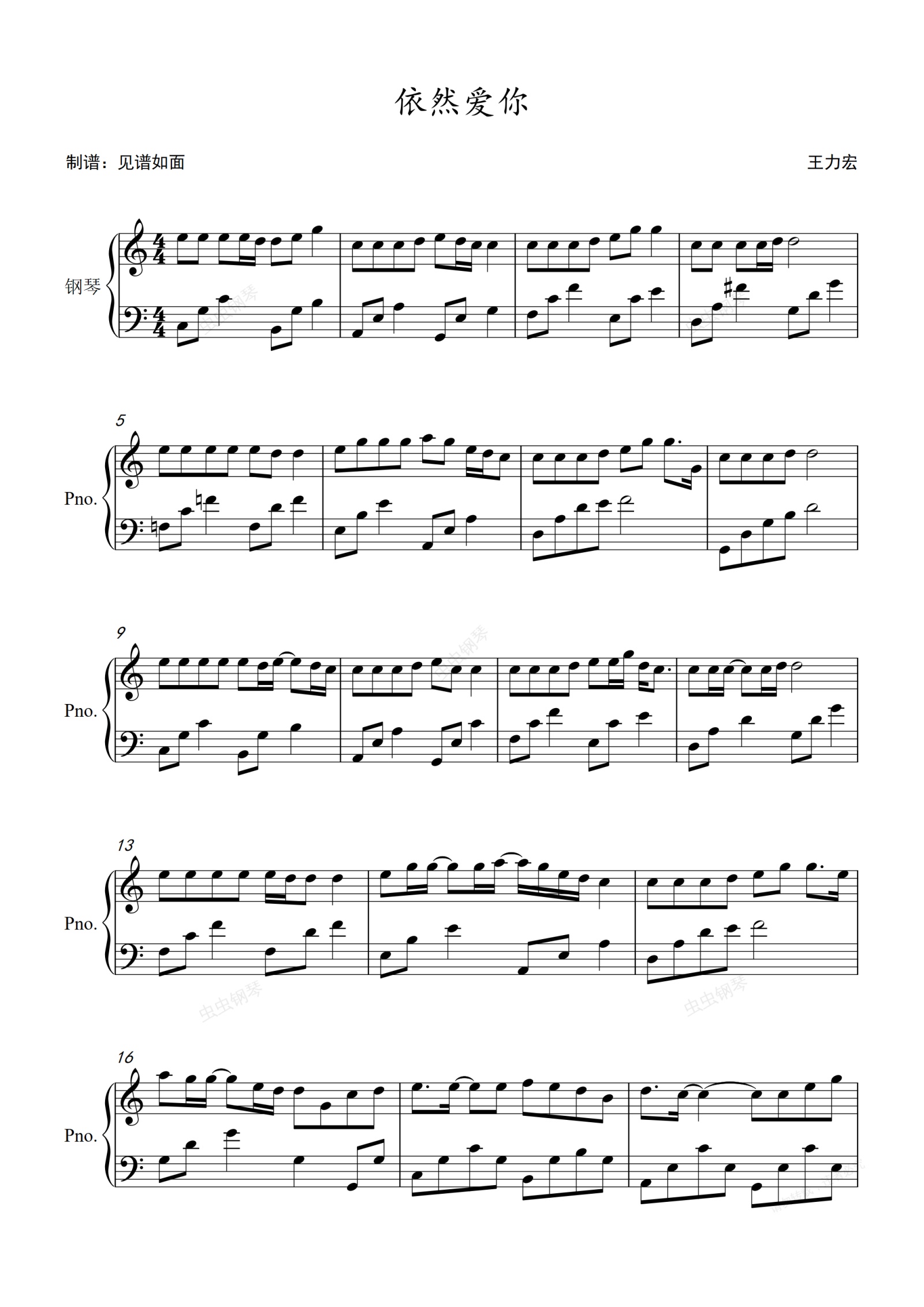 钢琴谱:依然爱你 - 王力宏【c调初级】