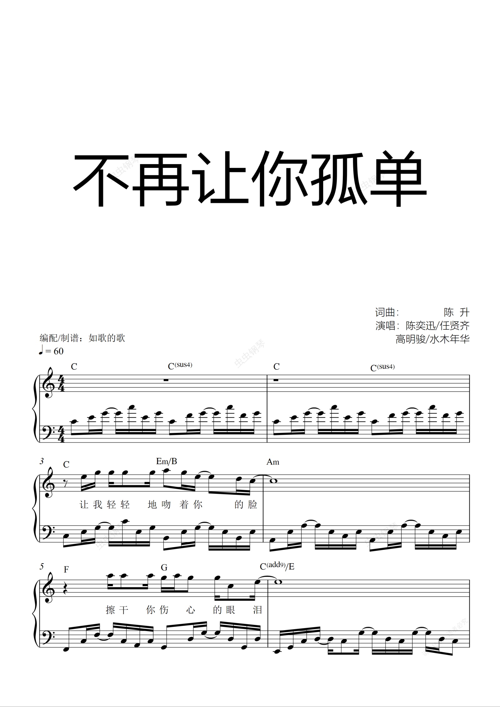 钢琴谱:不再让你孤单-弹唱&独奏-告白求爱专用情歌
