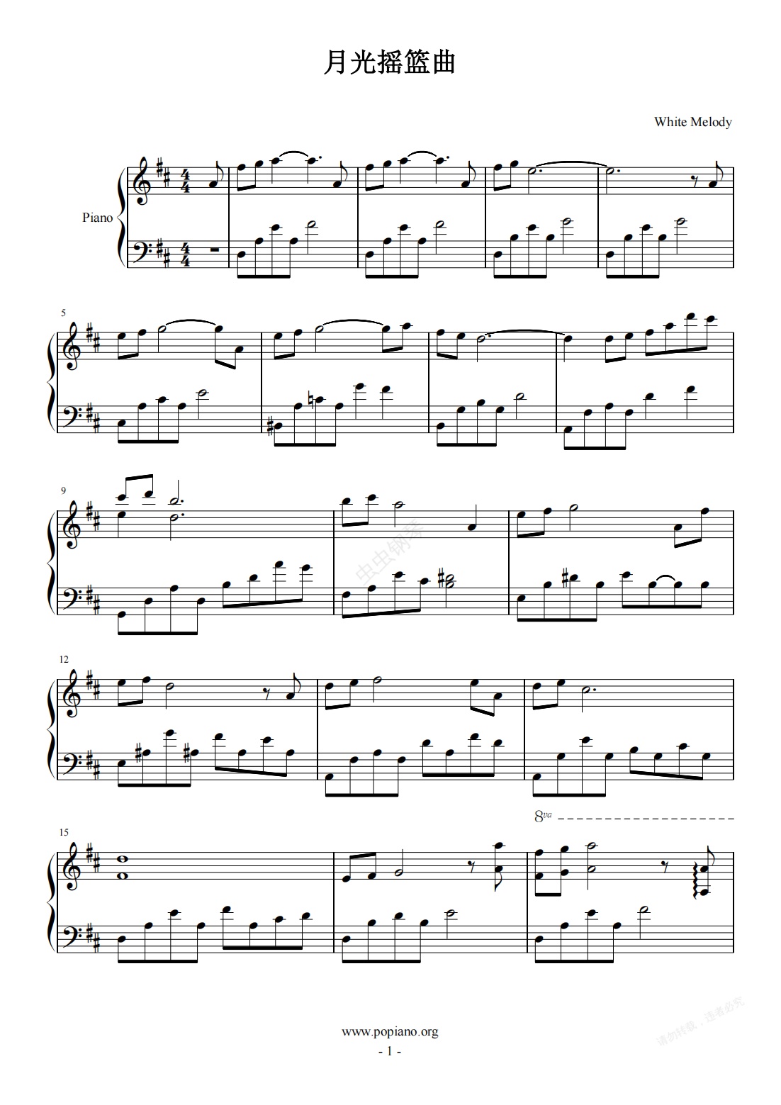 钢琴谱:月光摇篮曲 演奏谱