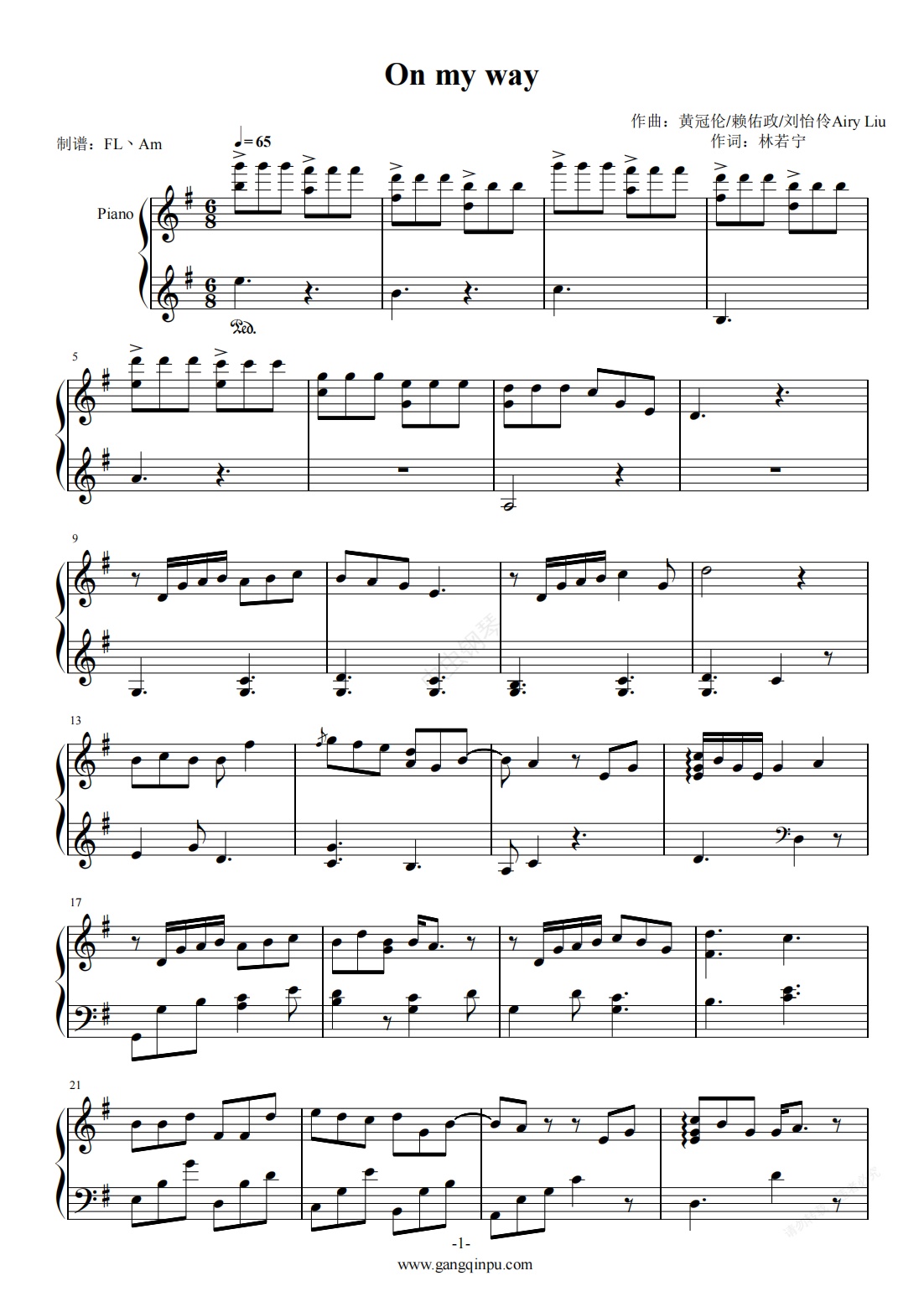 钢琴谱:On my way