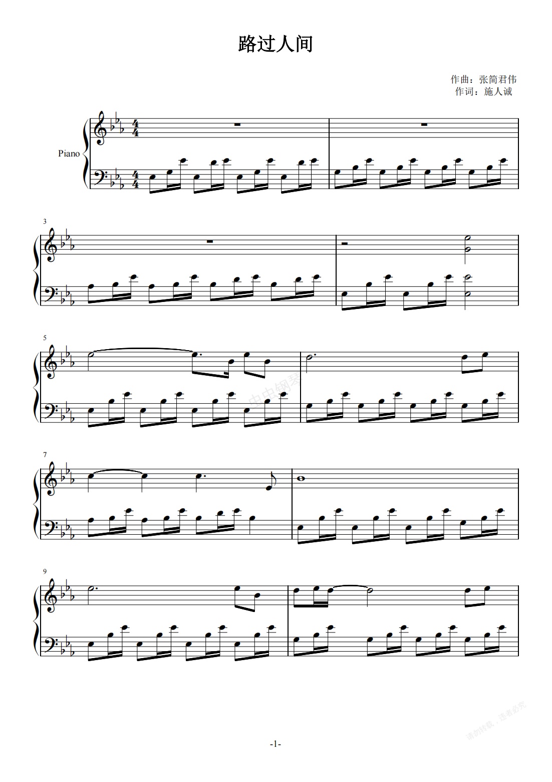 钢琴谱:郁可唯-路过人间 原调完美演奏版