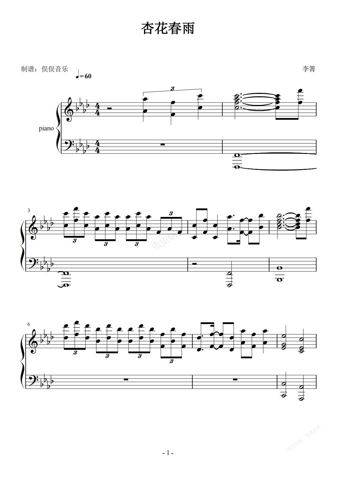 钢琴谱:杏花春雨(三声部合唱伴奏谱)