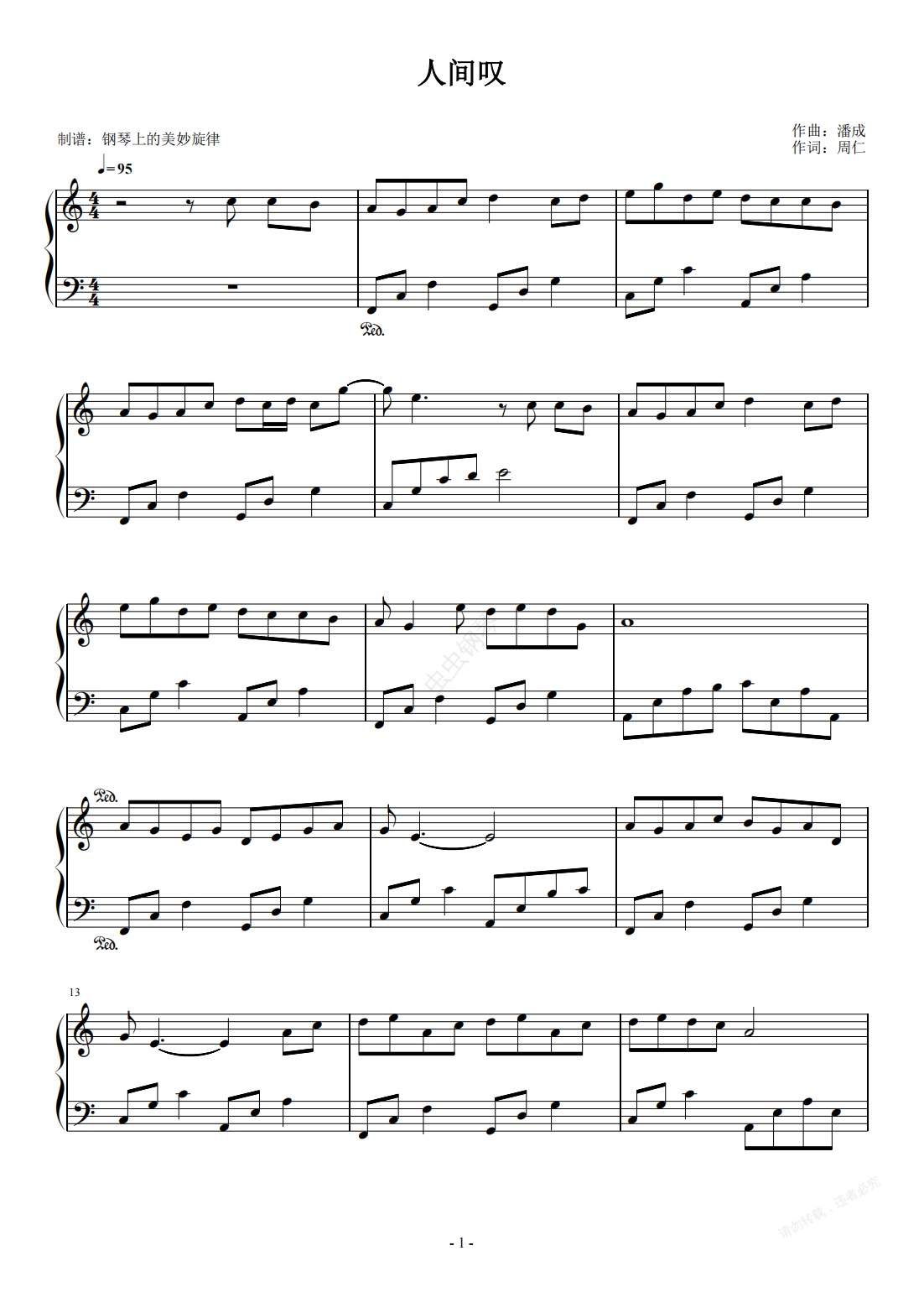 钢琴谱:人间叹  C调简易版  等什么君(邓寓君)