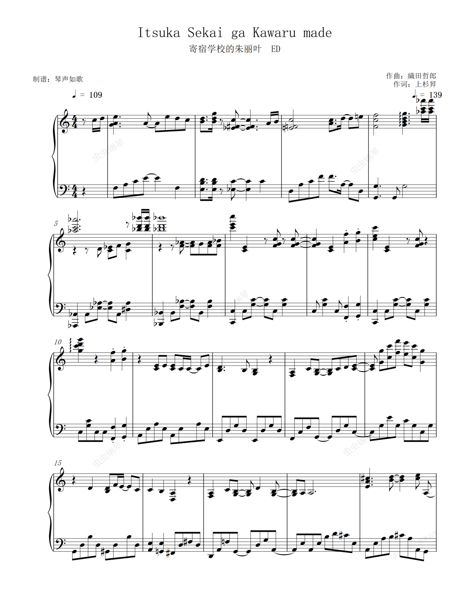钢琴谱:寄宿学校的朱丽叶  ED-世界が終るまでは