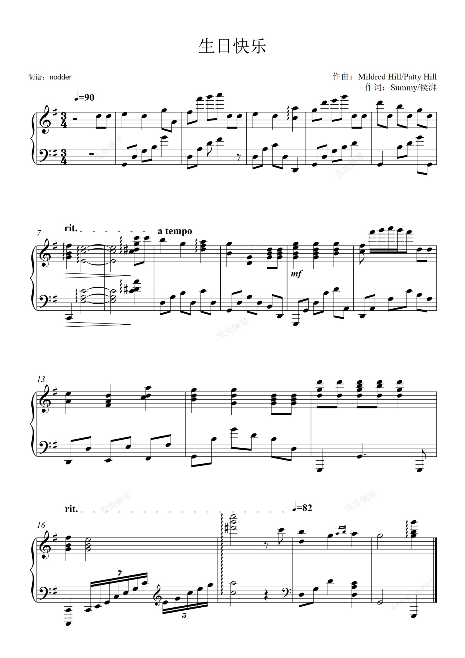 钢琴谱:生日快乐-超动听伴奏