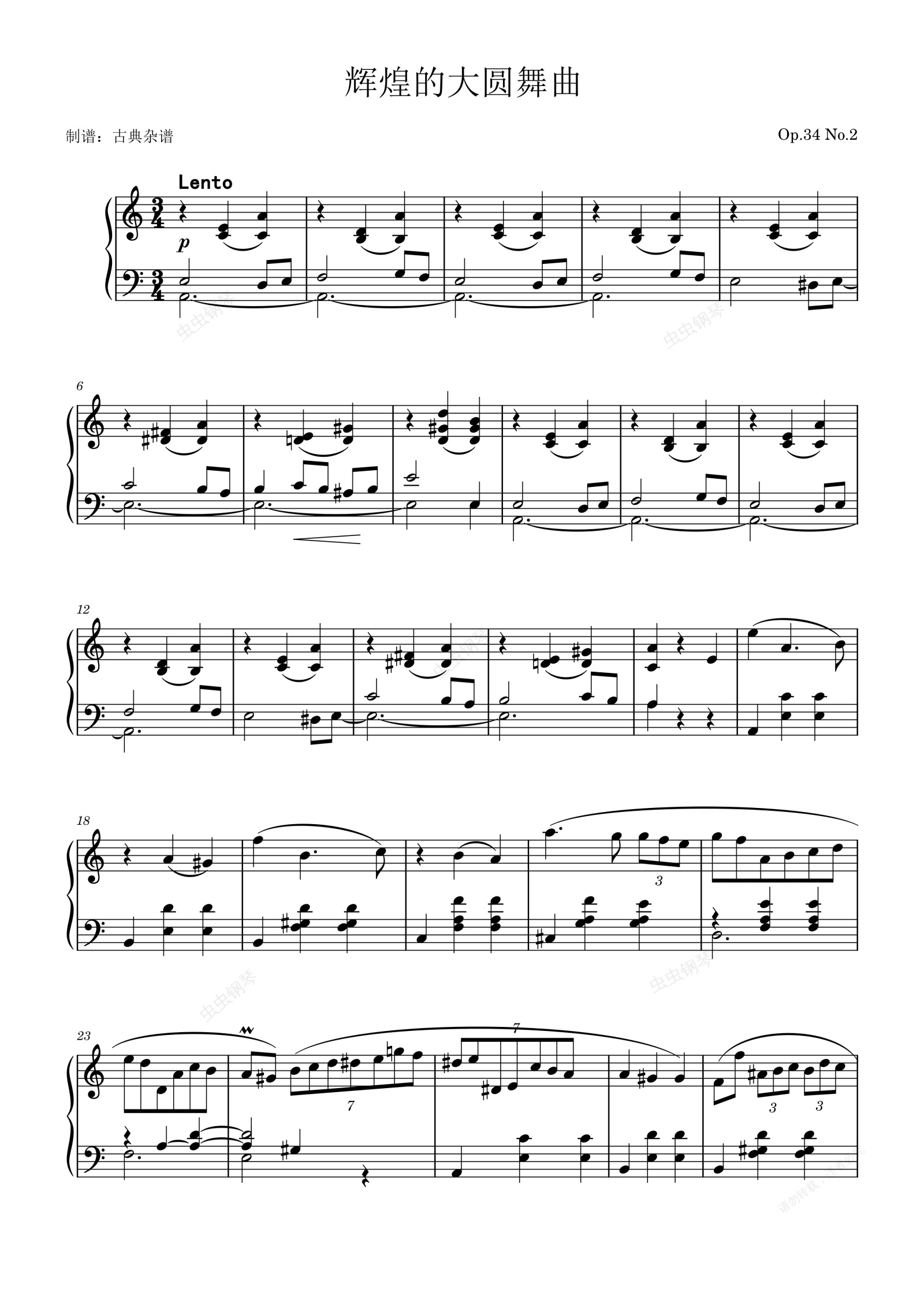 钢琴谱:辉煌的大圆舞曲 Op.34 No.2,肖邦