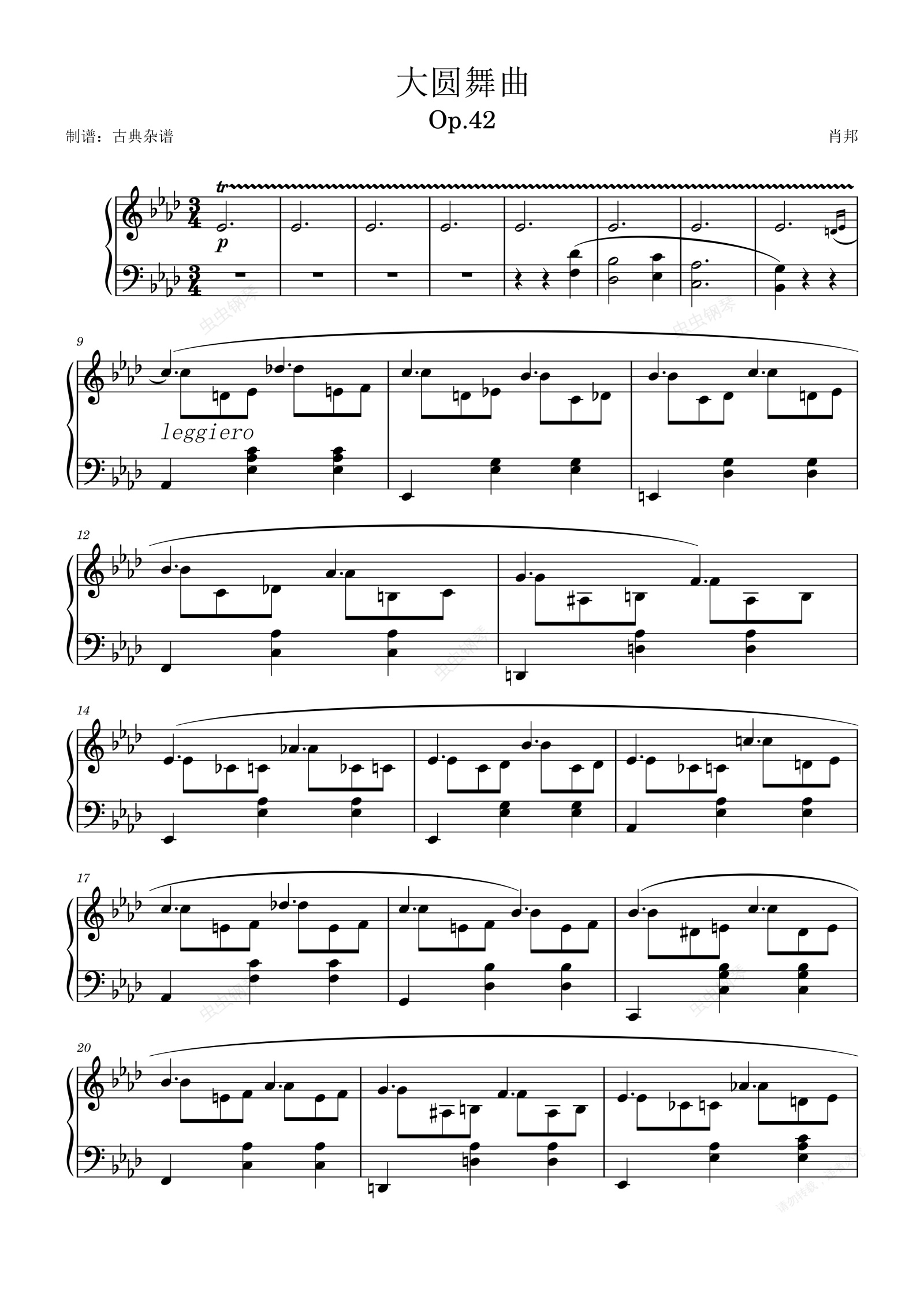 钢琴谱:大圆舞曲 Op.42,肖邦