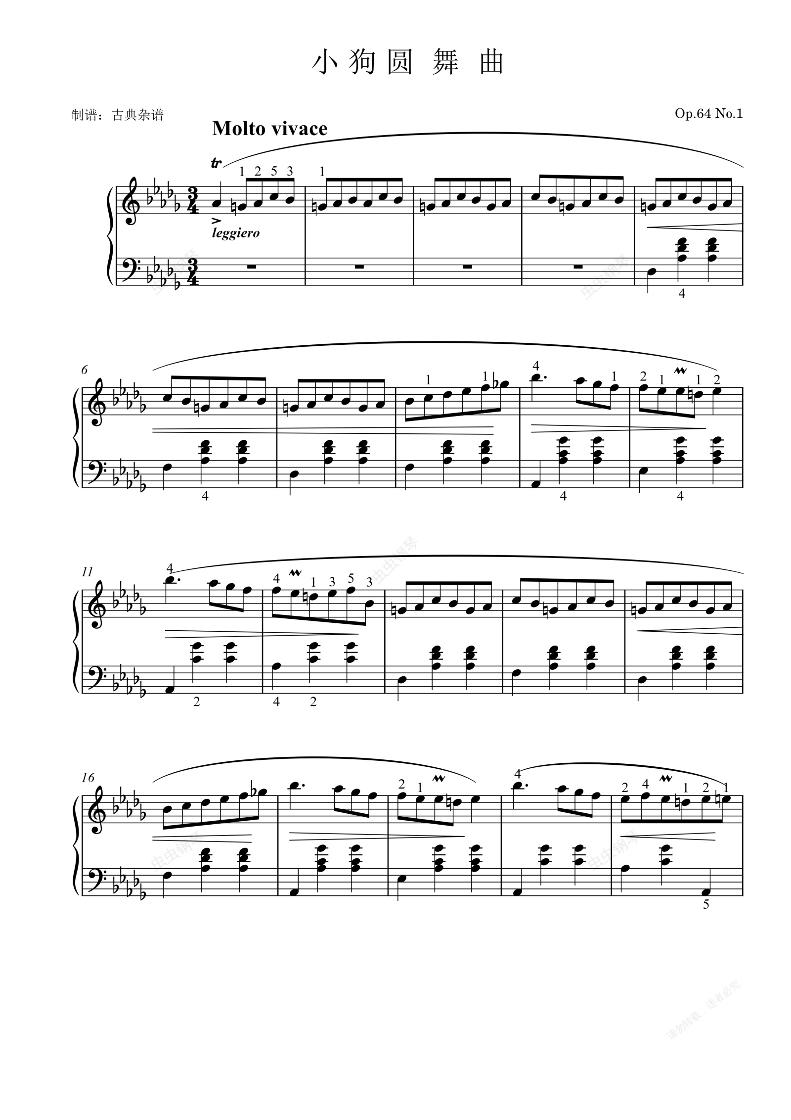 钢琴谱:小狗圆舞曲 Op.64 No.1,肖邦