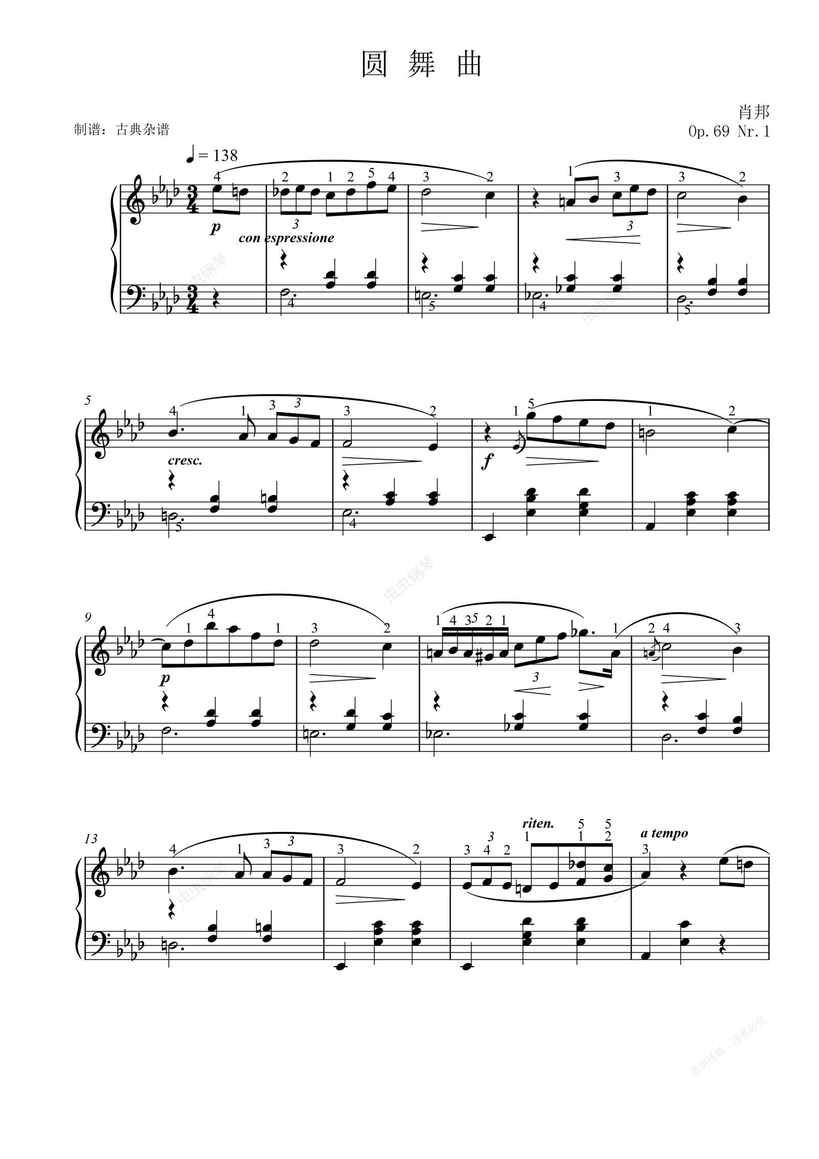 钢琴谱:圆舞曲 Op.69 Nr.1,肖邦