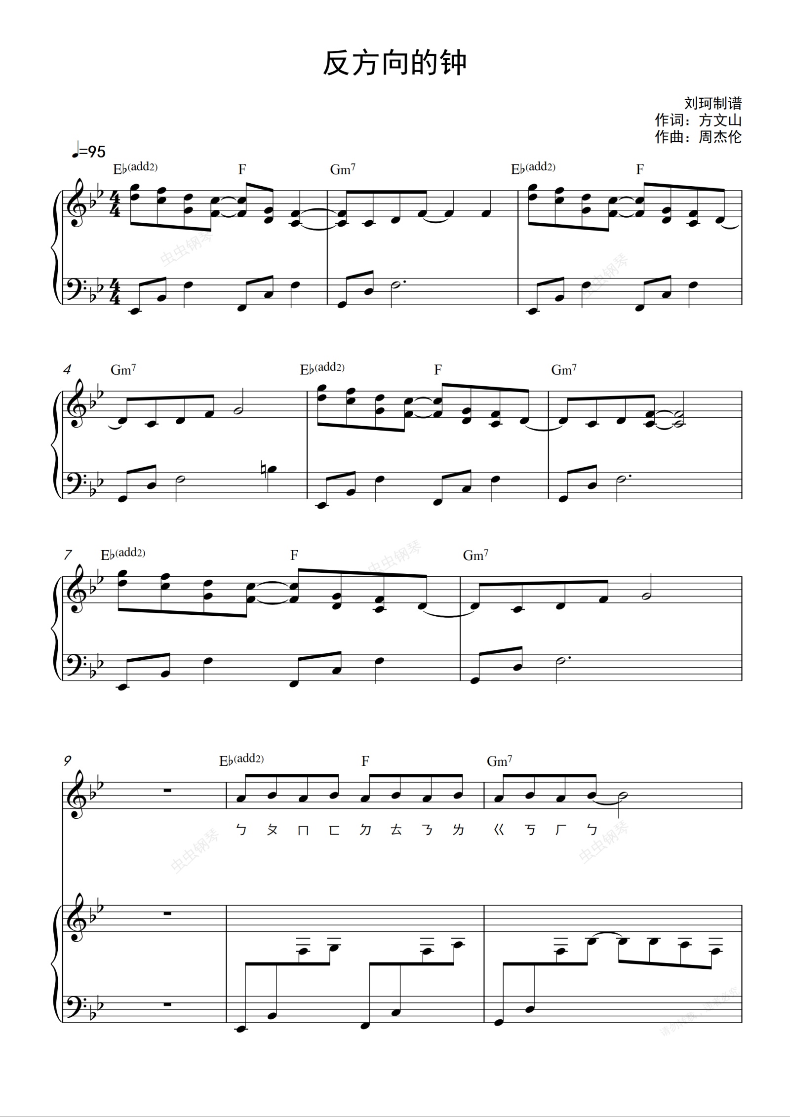 钢琴谱:反方向的钟 - 周杰伦 完整钢琴伴奏谱