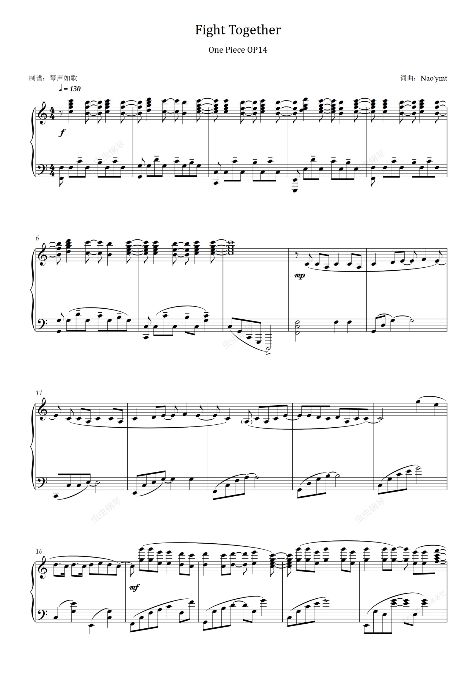 钢琴谱:海贼王ONE PIECE OP14-Fight Together