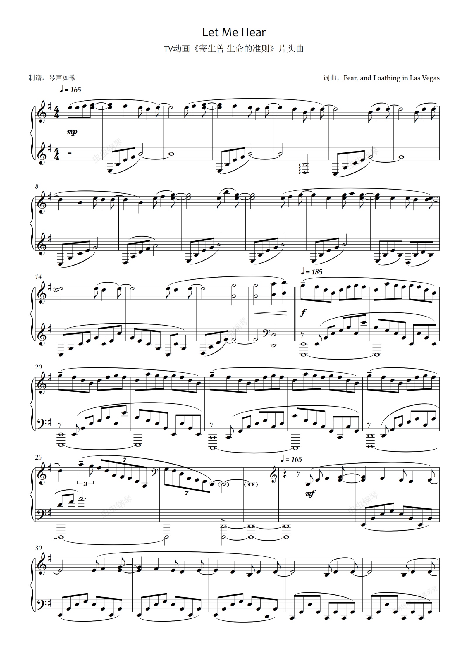 钢琴谱:TV动画《寄生兽 生命的准则》片头曲-Let Me Hear