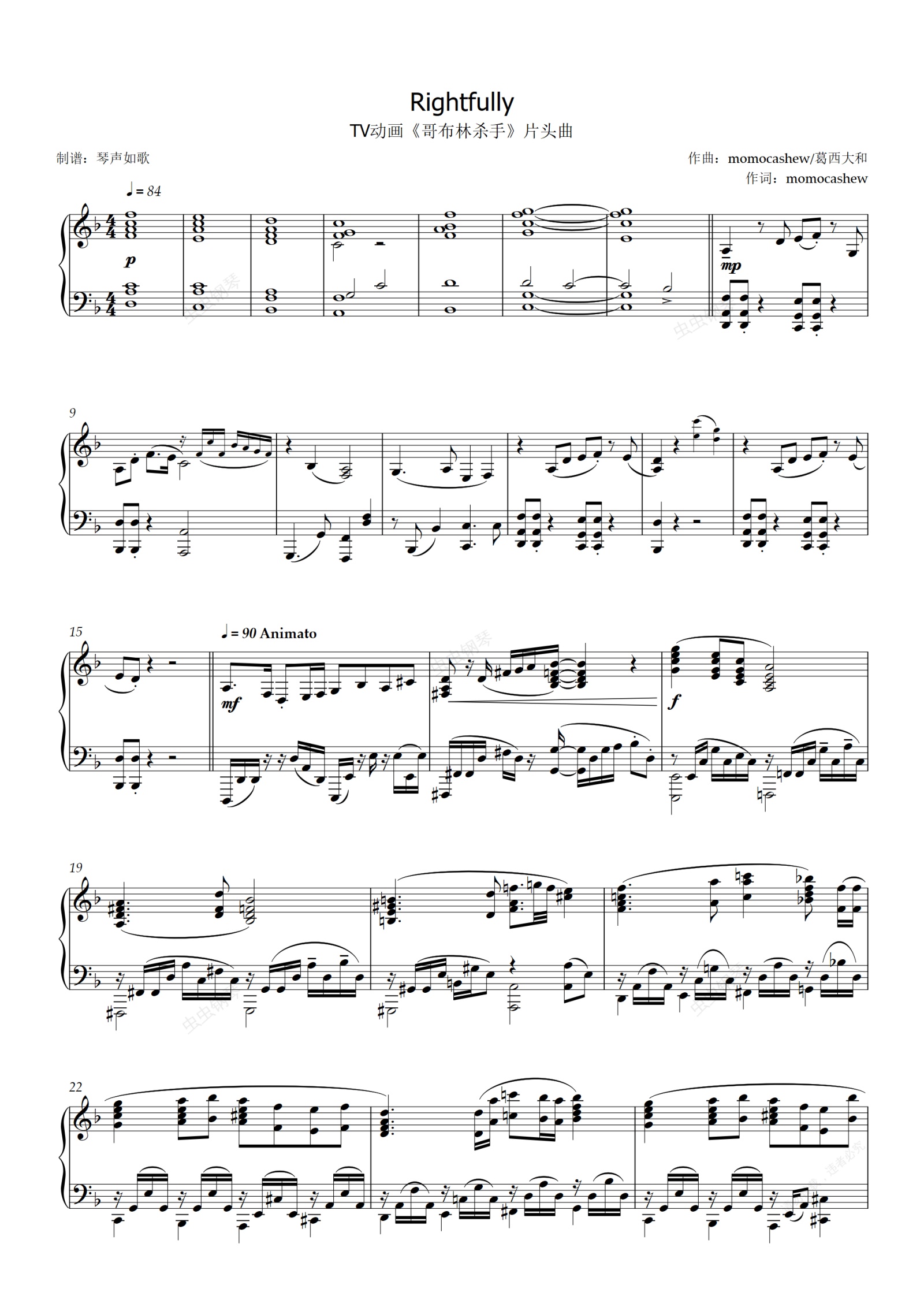 钢琴谱:TV动画《哥布林杀手》片头曲-Rightfully