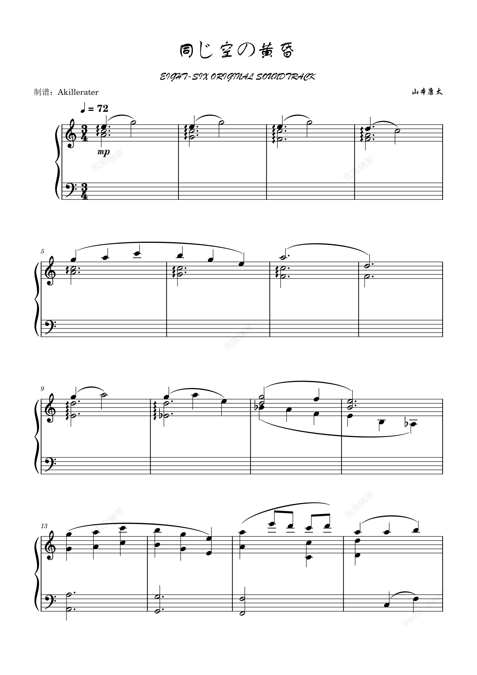 钢琴谱:同じ空の黄昏(同一片天空的黄昏《86-不存在的战区-》)