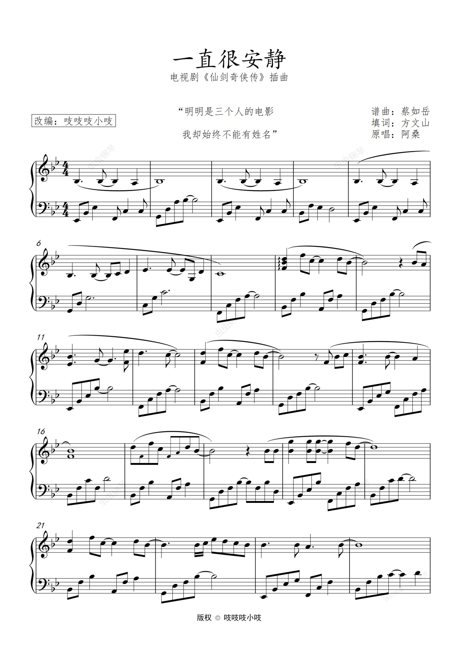 钢琴谱:《一直很安静》(《仙剑奇侠传》插曲)吱吱版