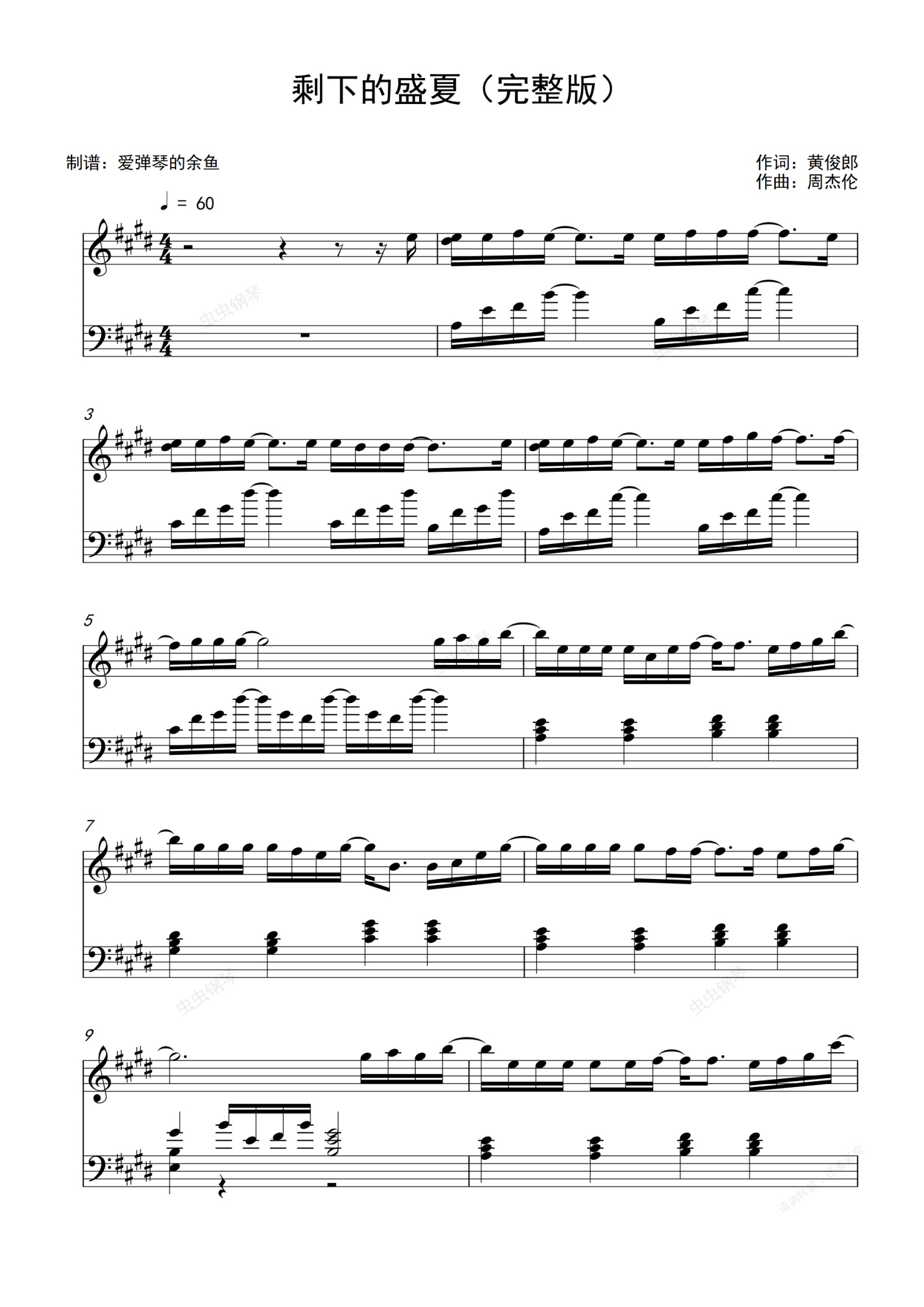 钢琴谱:TFBOYS剩下的盛夏-完整版-原调E调超还原-新手好听易学-弹钢琴的余鱼编配