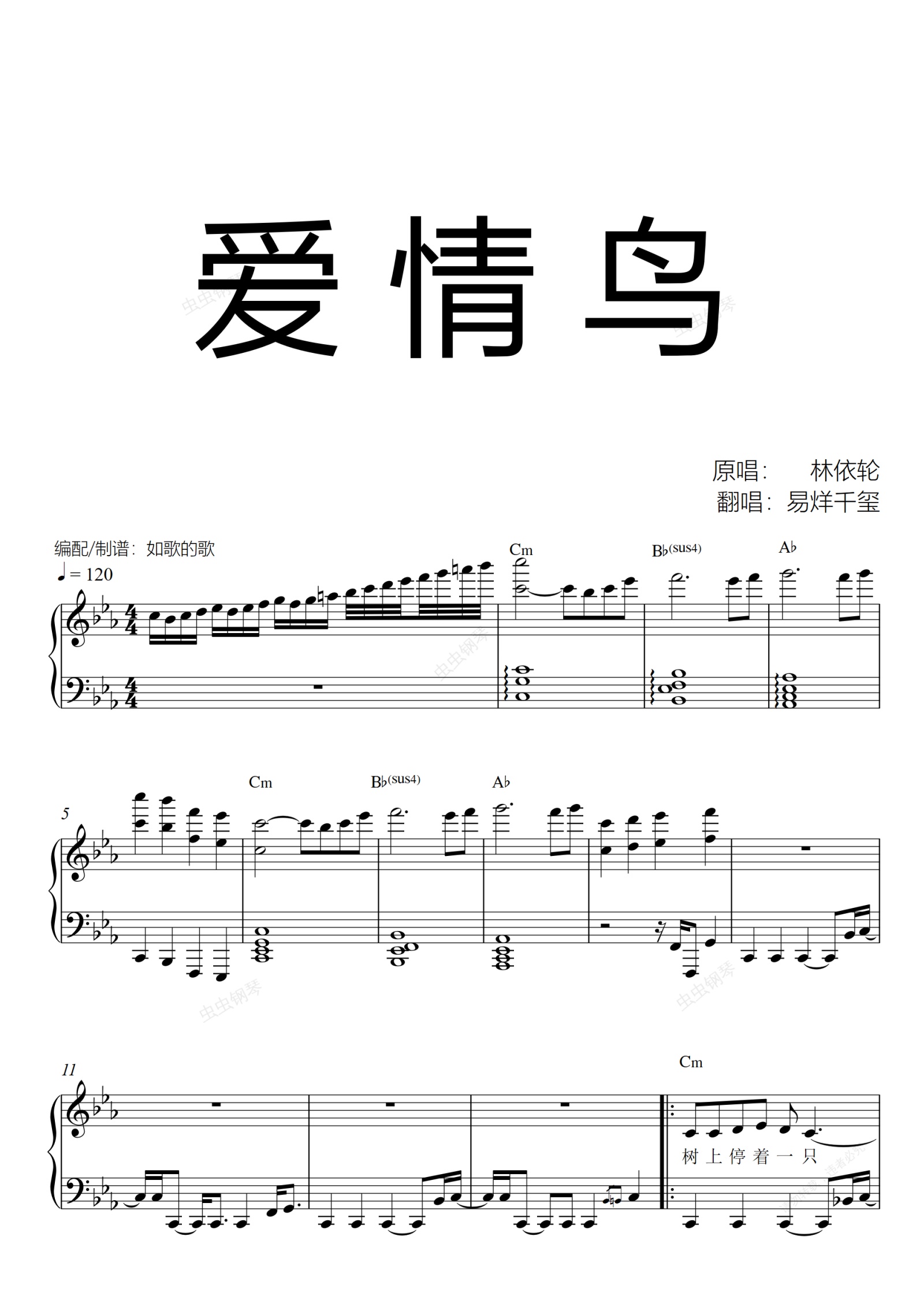 钢琴谱:爱情鸟-易烊千玺可弹唱
