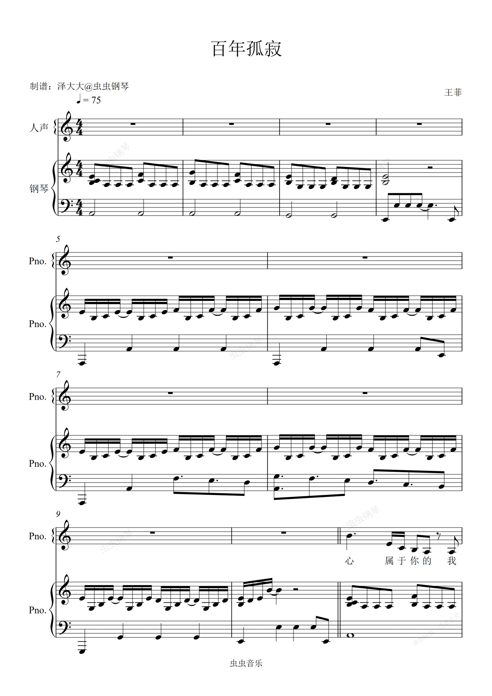 钢琴谱:百年孤寂【超燃弹唱附词】泽大大 王菲