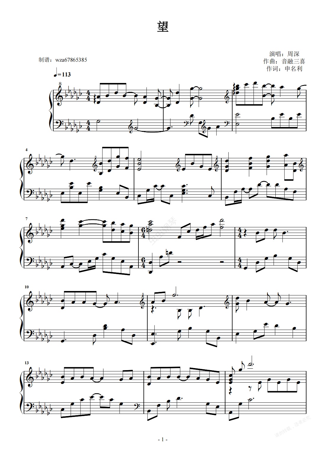 钢琴谱:望