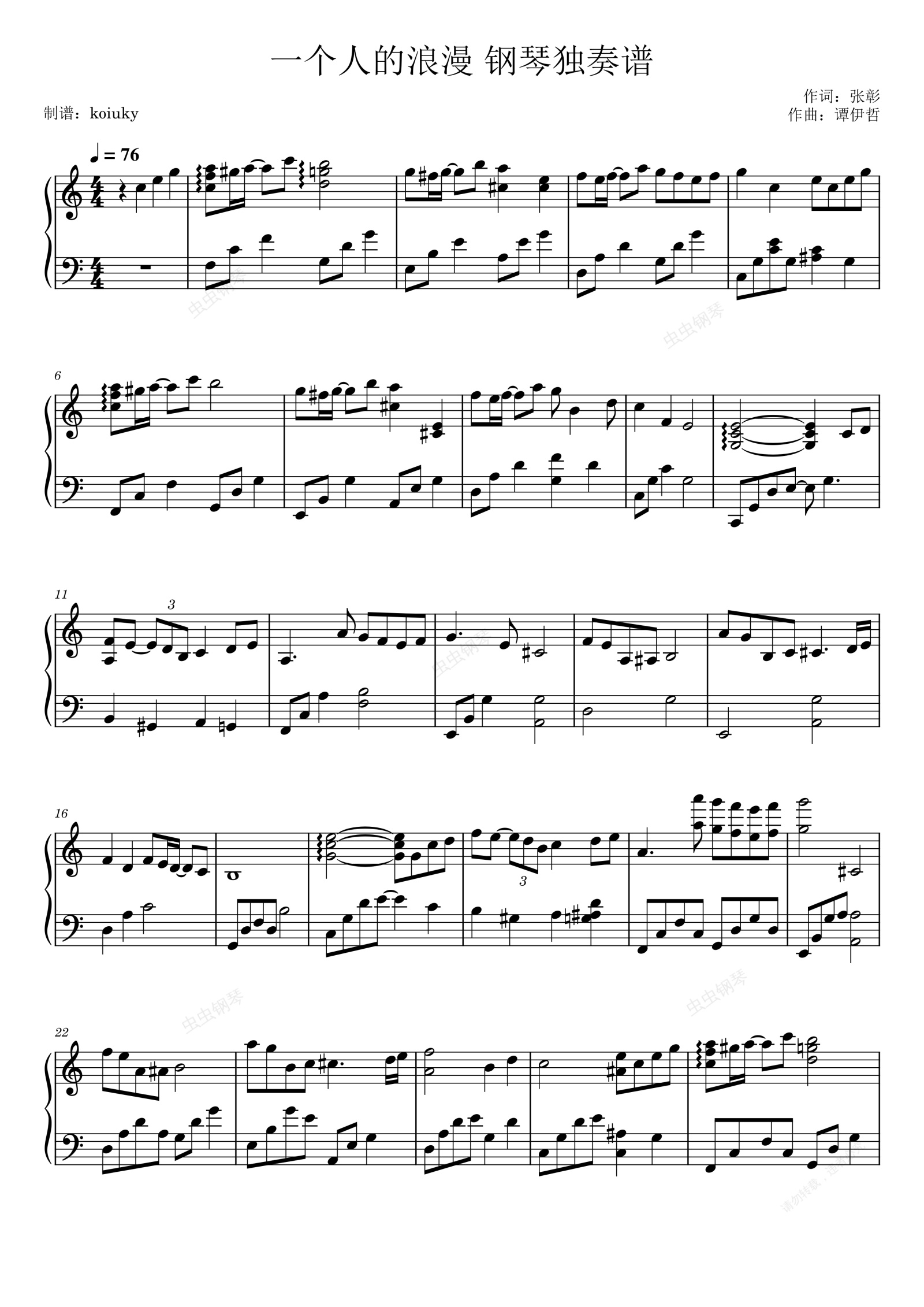 钢琴谱:一个人的浪漫钢琴独奏谱