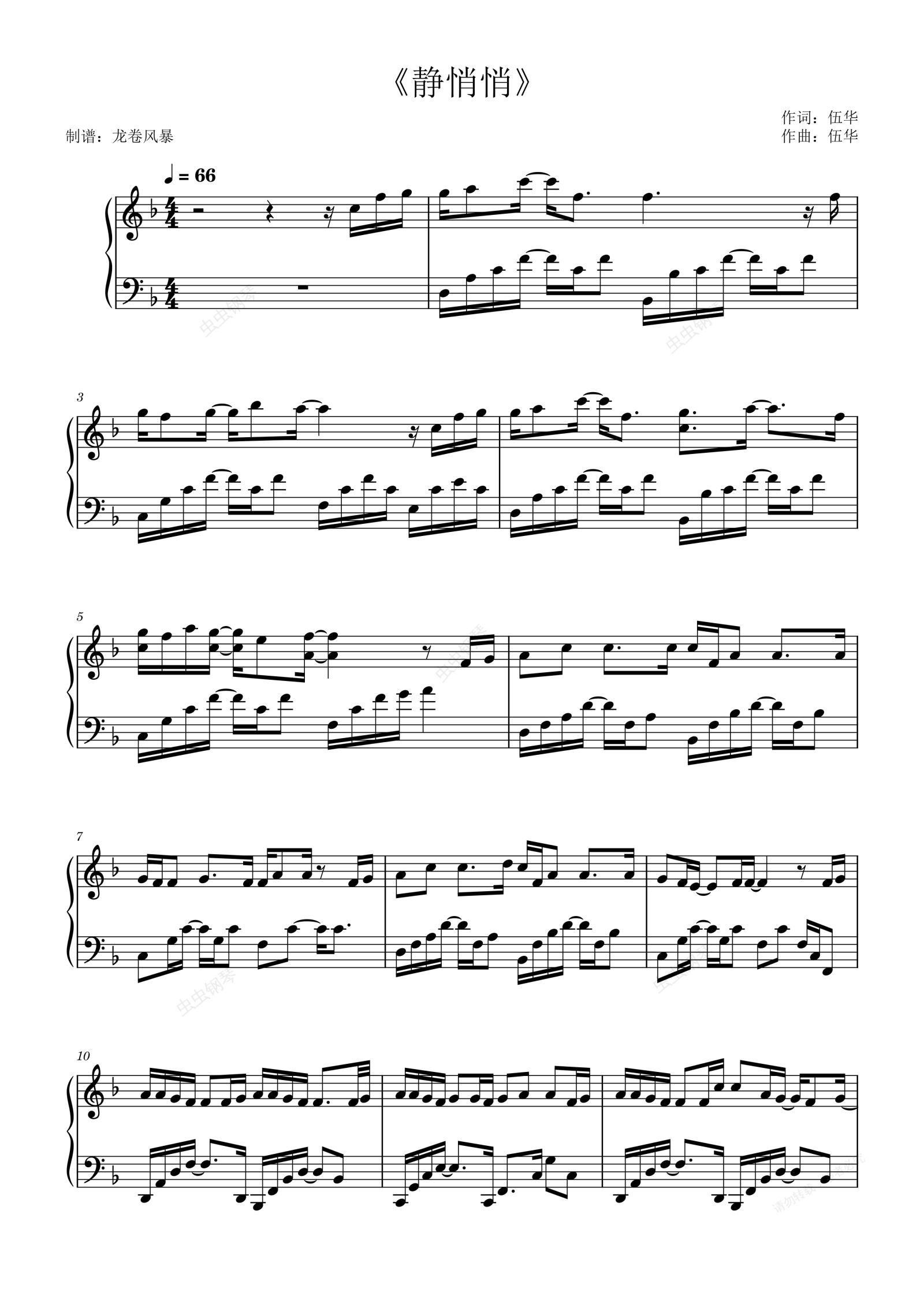 钢琴谱:《静悄悄》陈泫孝(大泫)(F调唯美版)