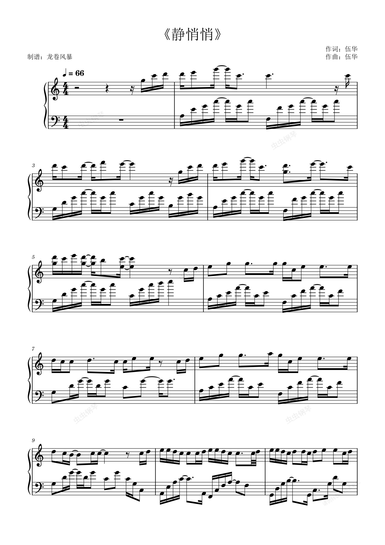 钢琴谱:《静悄悄》陈泫孝(大泫)(C调唯美版)