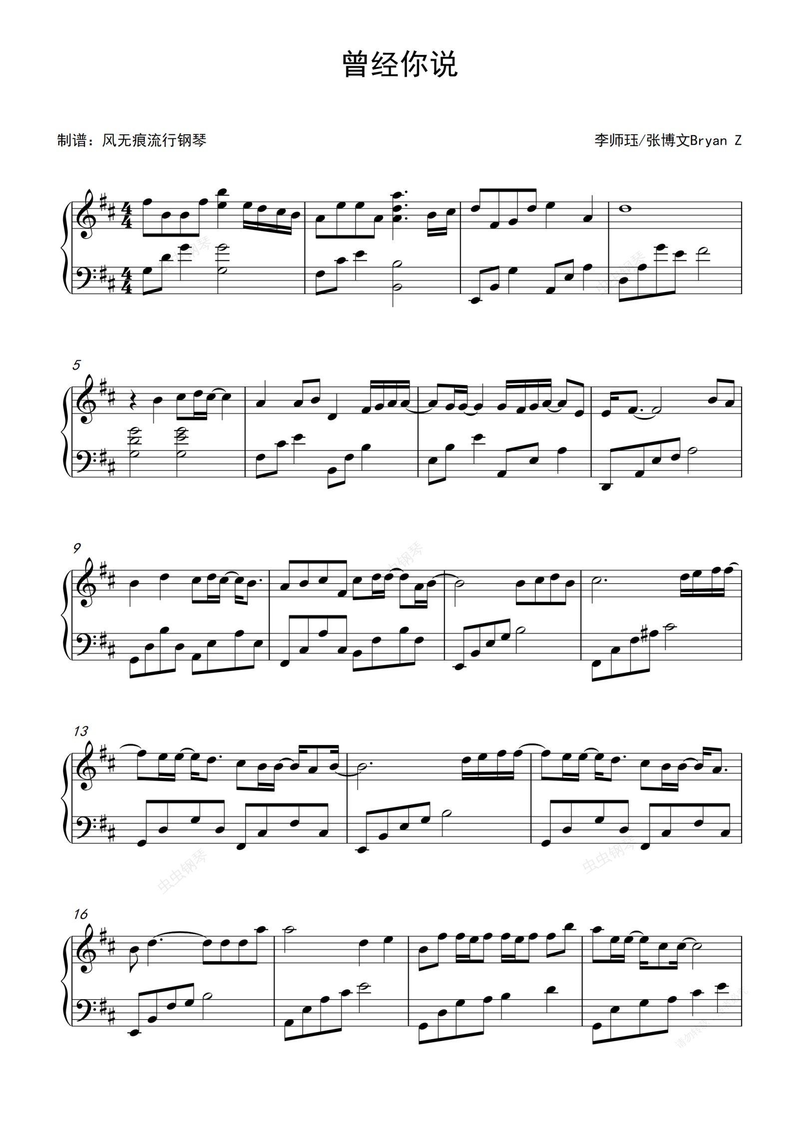 钢琴谱:C调-曾经你说-赵乃吉〖简易动听〗
