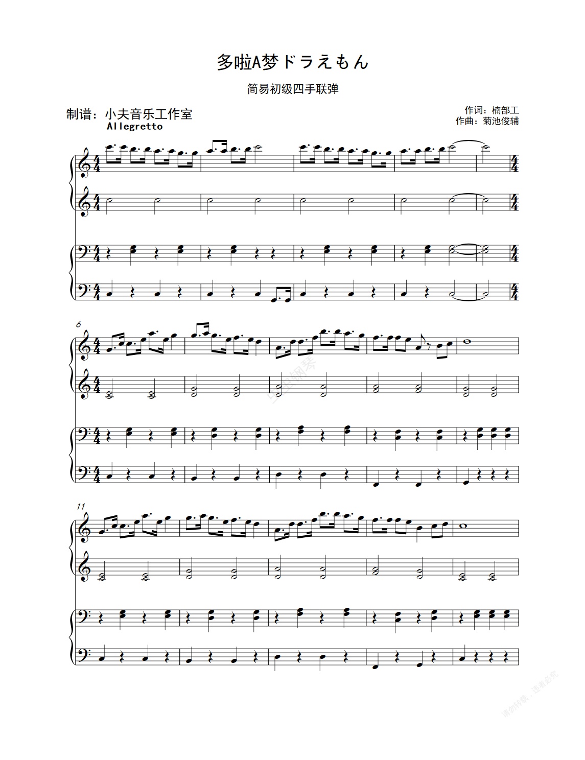 钢琴谱:多啦A梦ドラえもん 简易四手联弹