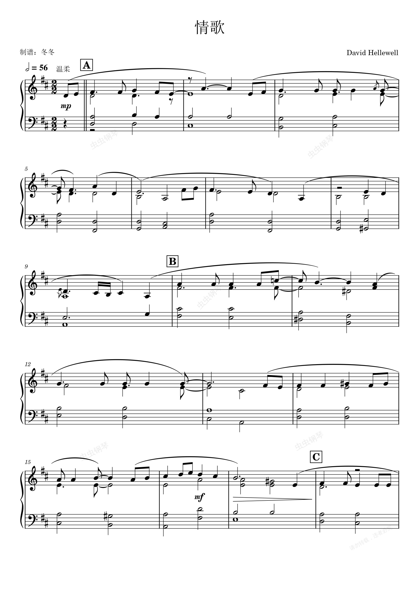 钢琴谱:情歌