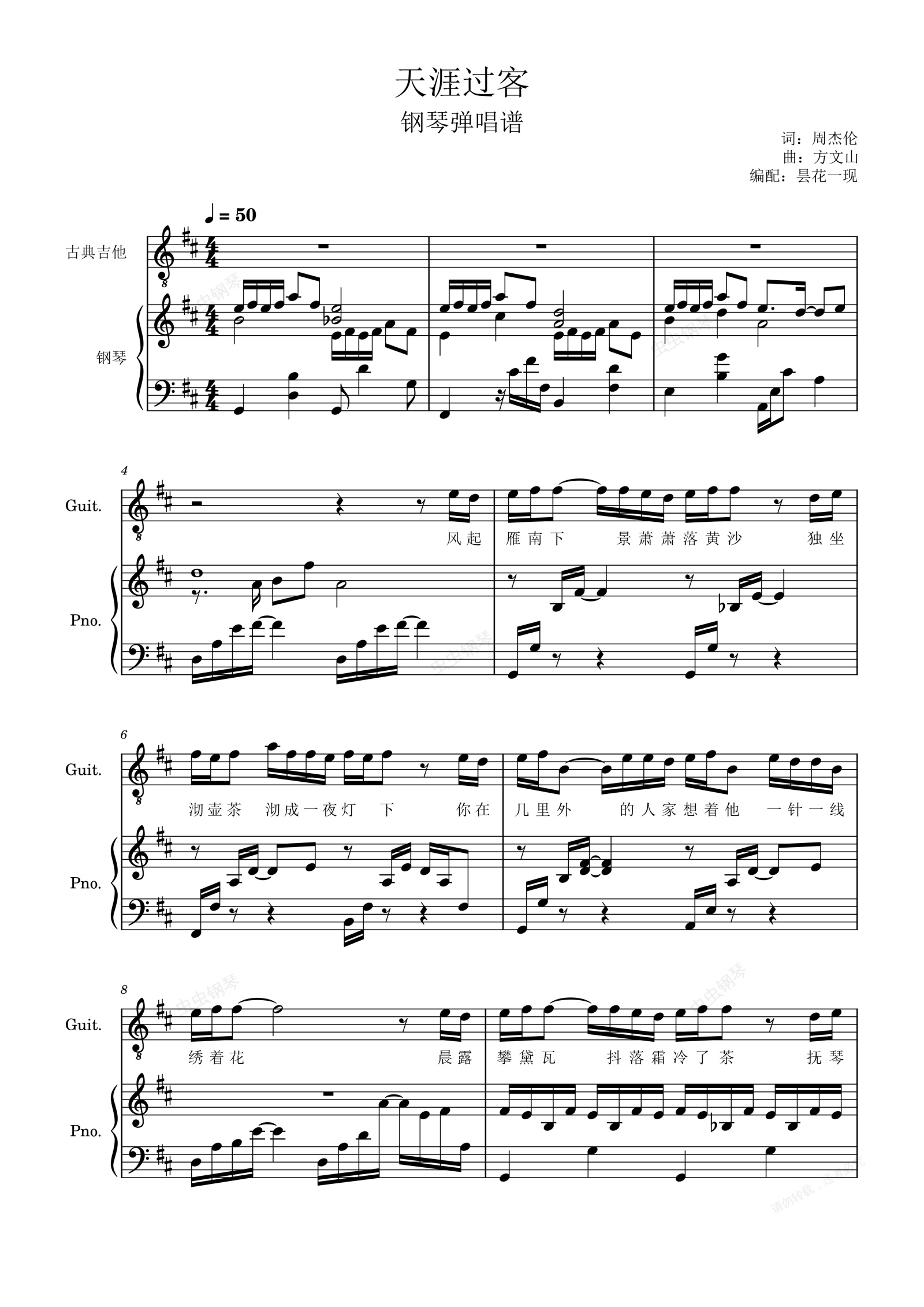 钢琴谱:天涯过客,周杰伦【弹唱谱】
