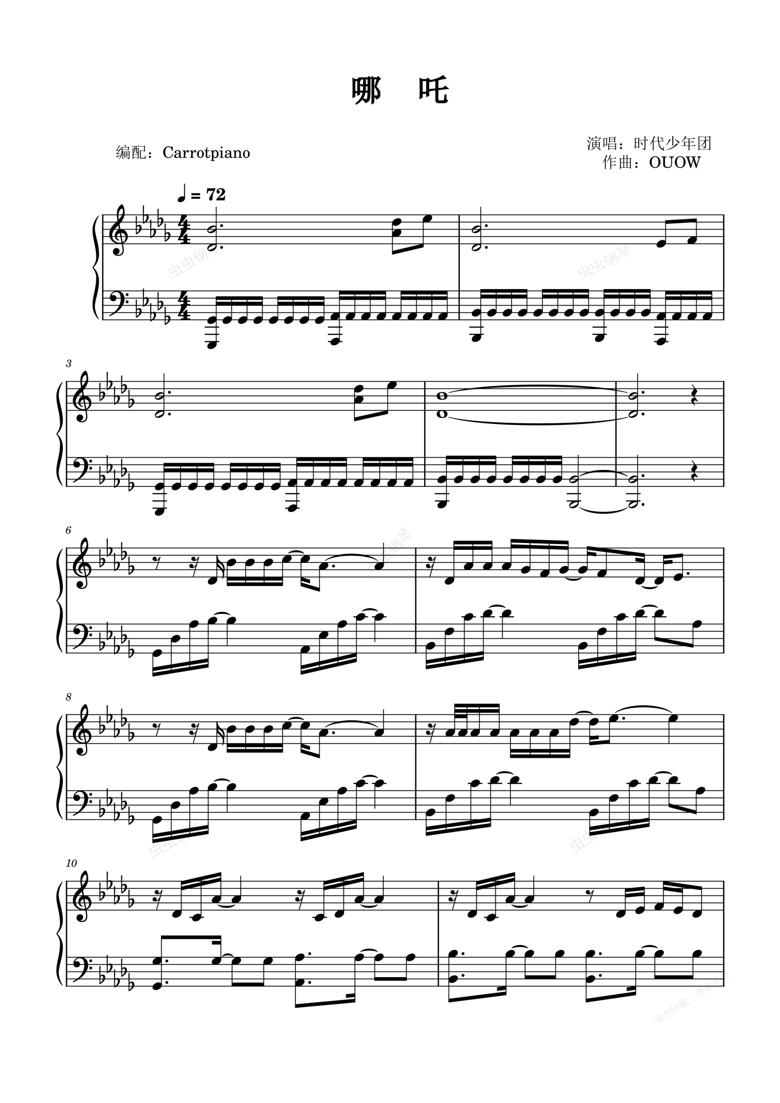 钢琴谱:时代少年团 - 哪吒 Db原调版