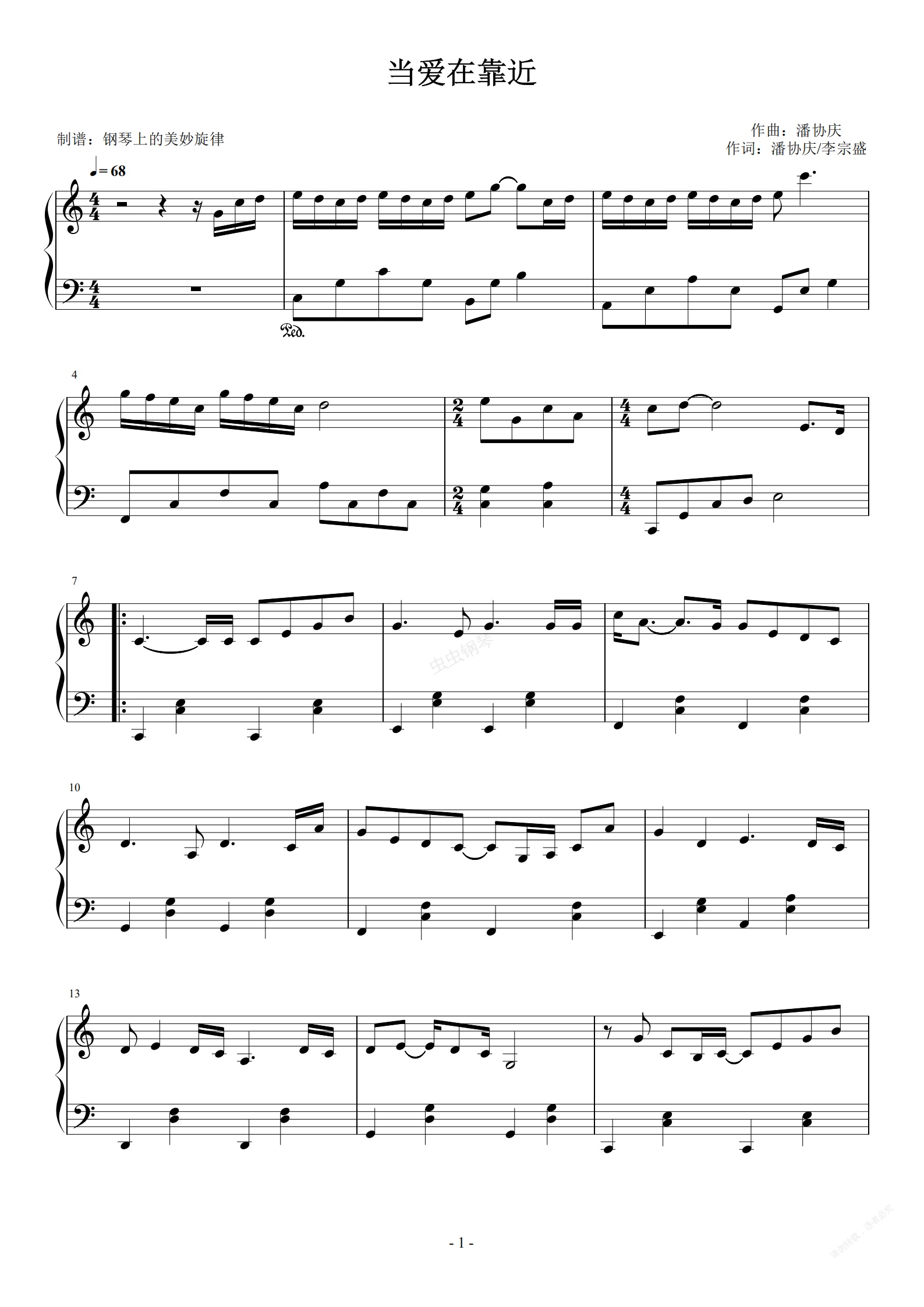 钢琴谱:当爱在靠近 c调简易版 刘若英