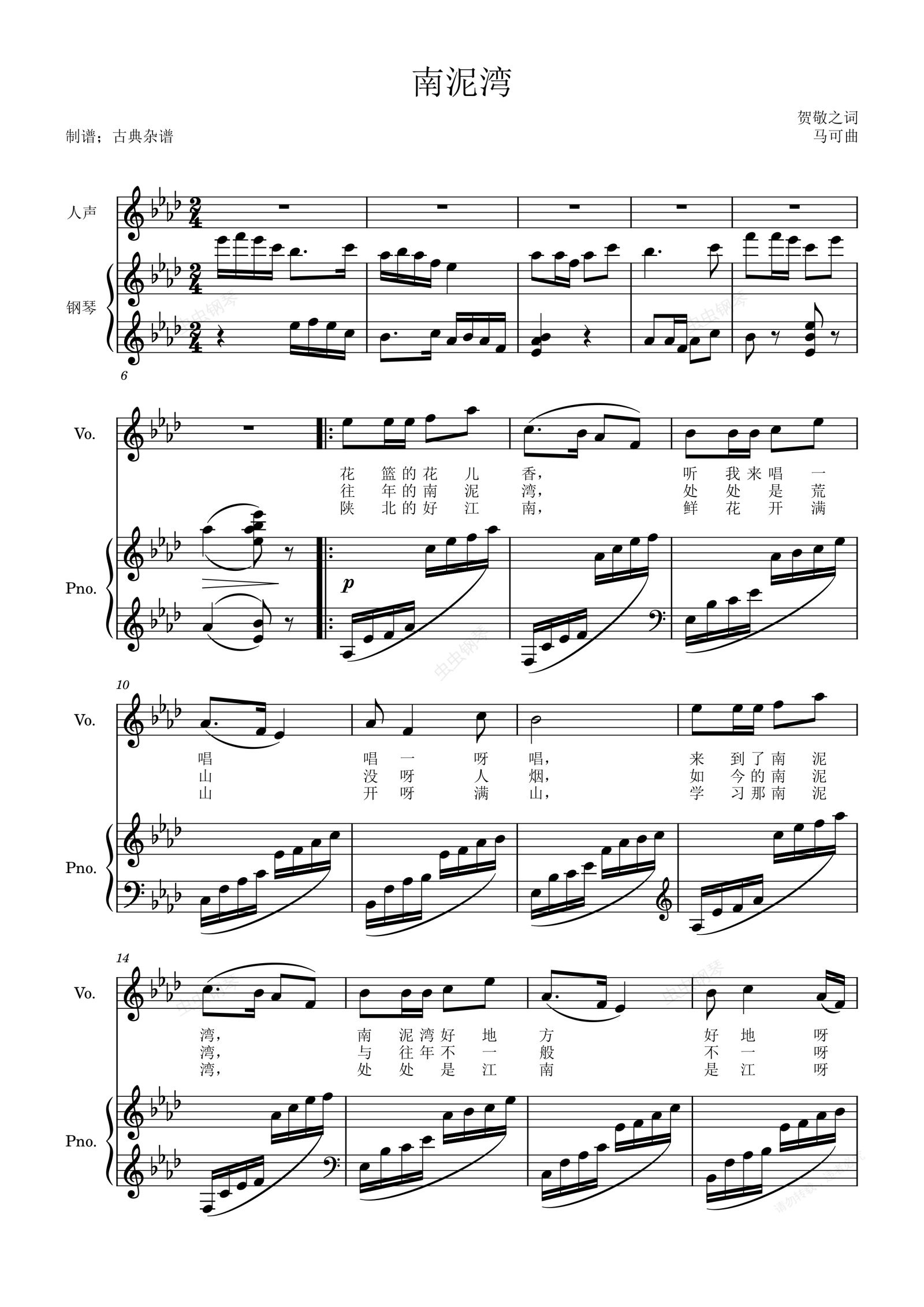 钢琴谱:南泥湾【声乐伴奏谱】贺敬之词 马可曲