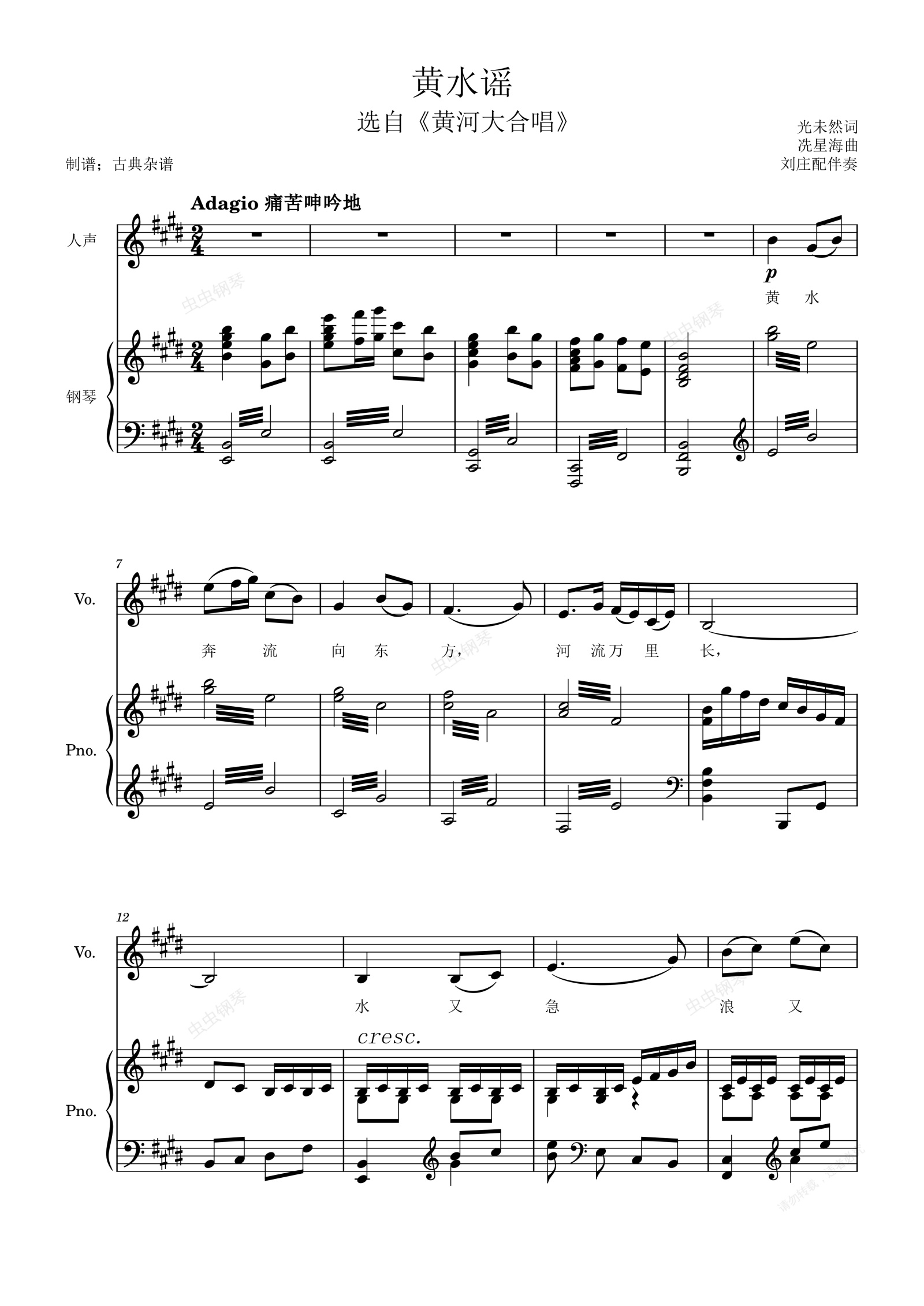 钢琴谱:黄水谣【声乐伴奏谱】冼星海