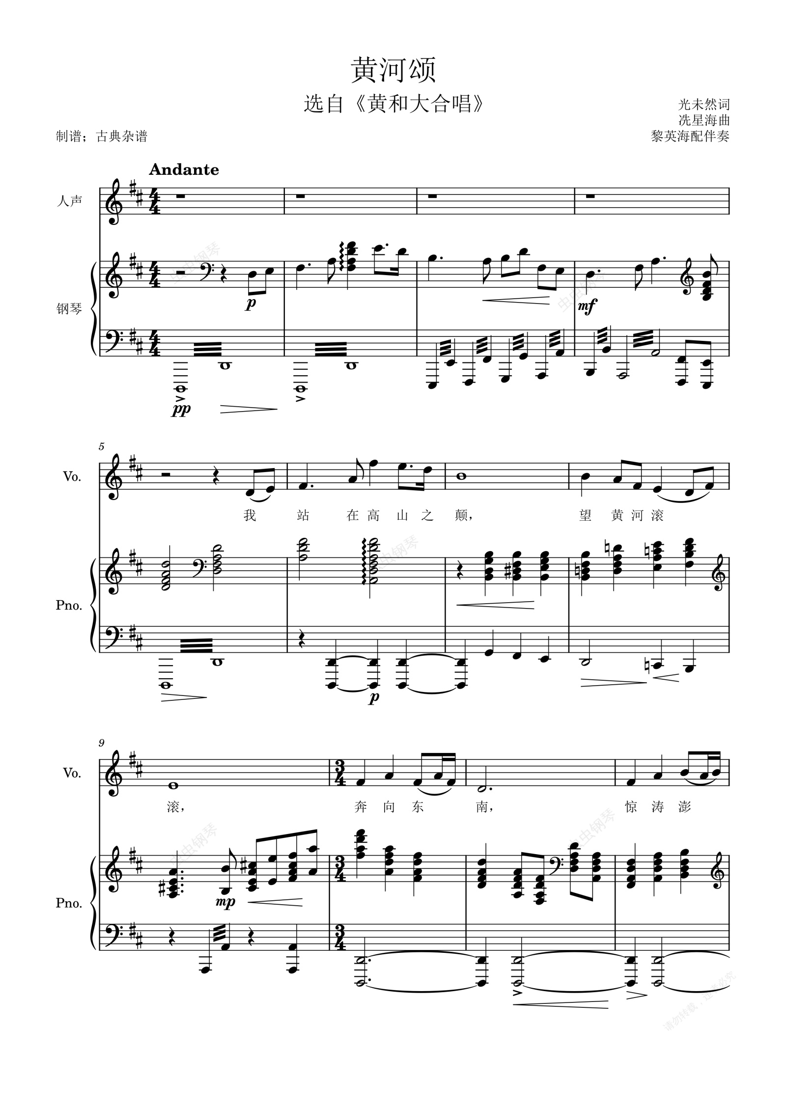 钢琴谱:黄河颂 冼星海【钢琴伴奏谱】