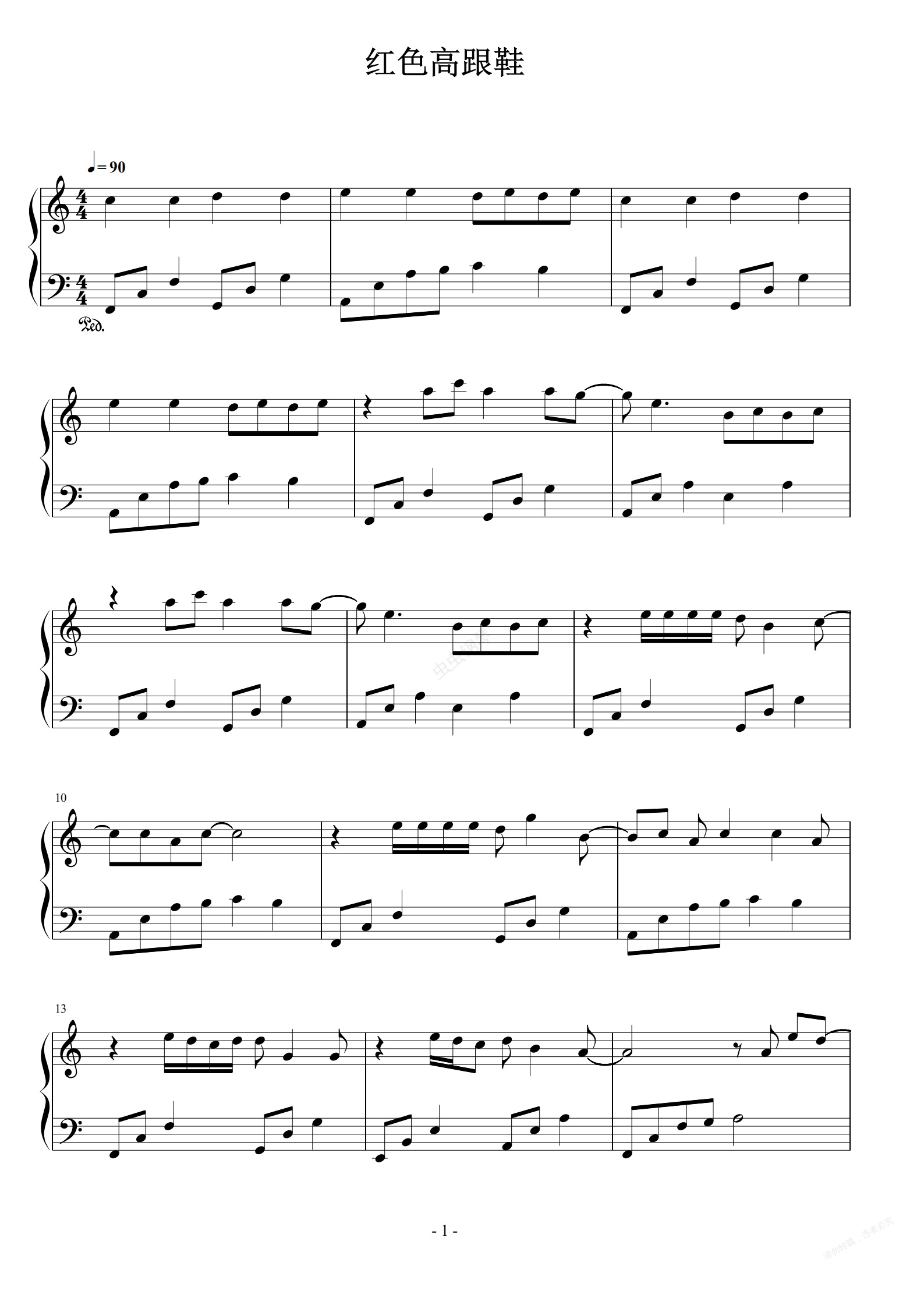 钢琴谱:红色高跟鞋 C调简易版 蔡健雅
