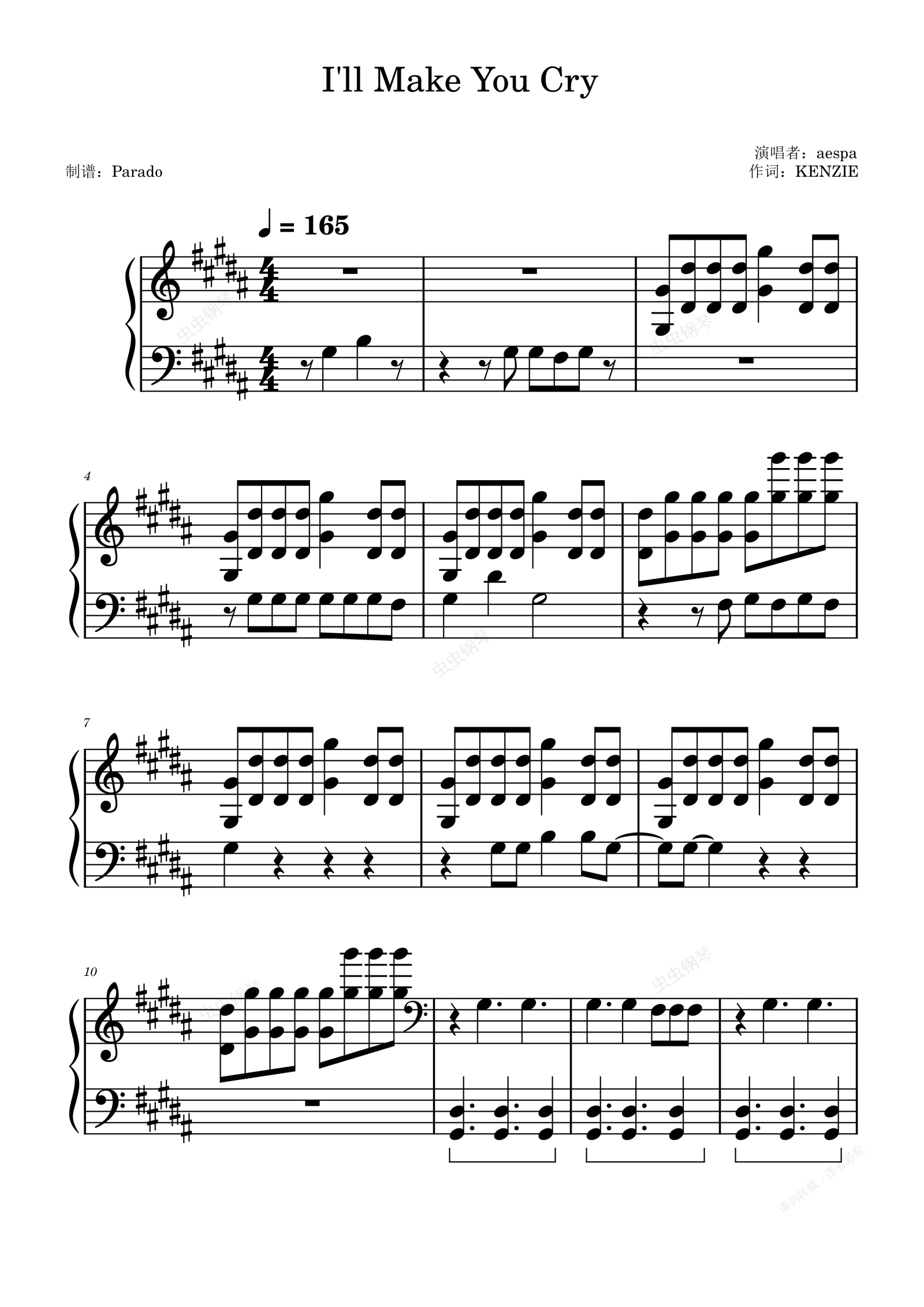 钢琴谱:I'll Make You Cry - aespa - 好听又好弹