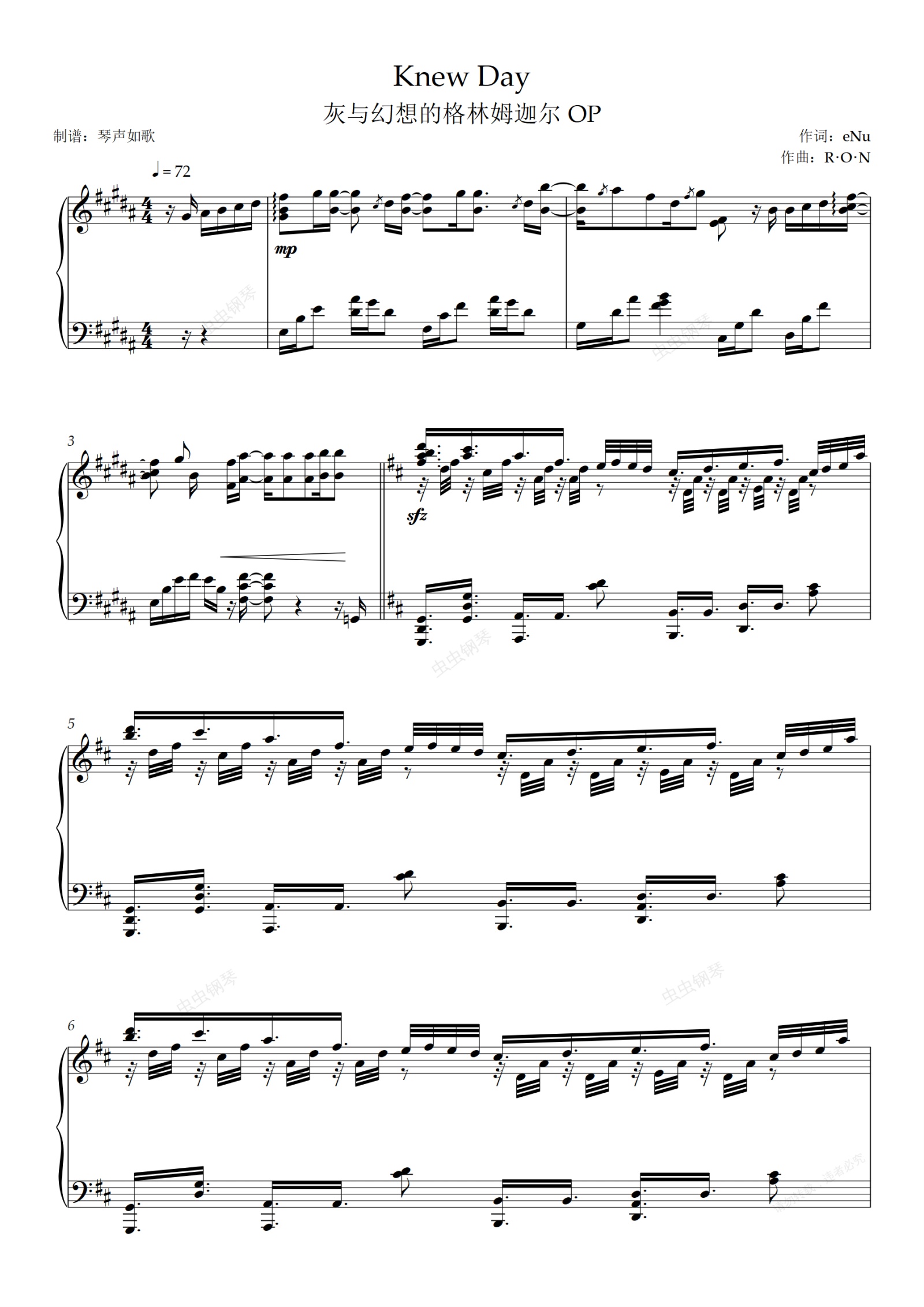 钢琴谱:灰与幻想的格林姆迦尔 OP-Knew Day